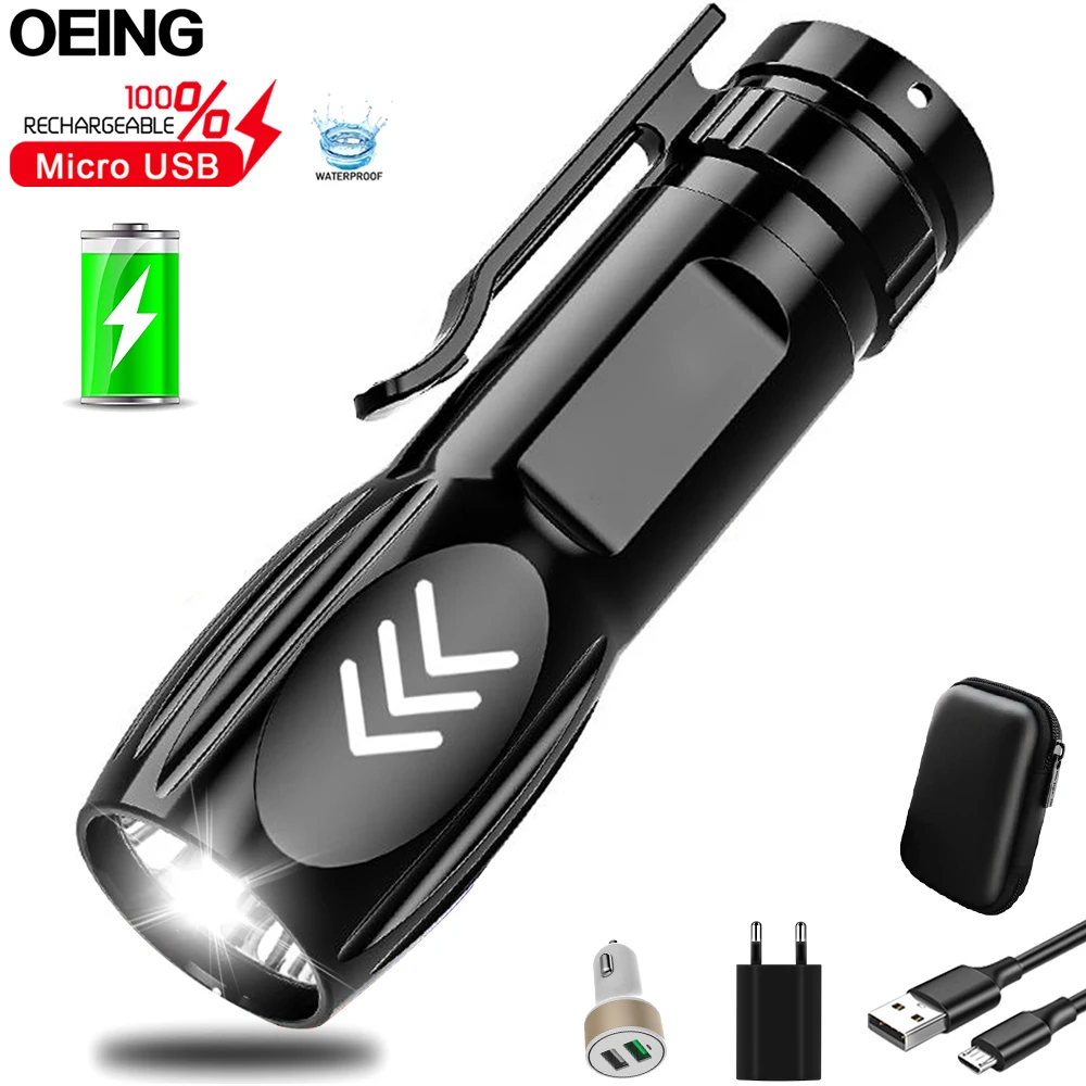 Перезаряжасветильник USB вспышка, светодиодный портативный фонарик с зажимом для ручки, водонепроницаемый, 3 режима, уличный фонарь для кемпинга, встроенный аккумулятор, ручная мини-лампа