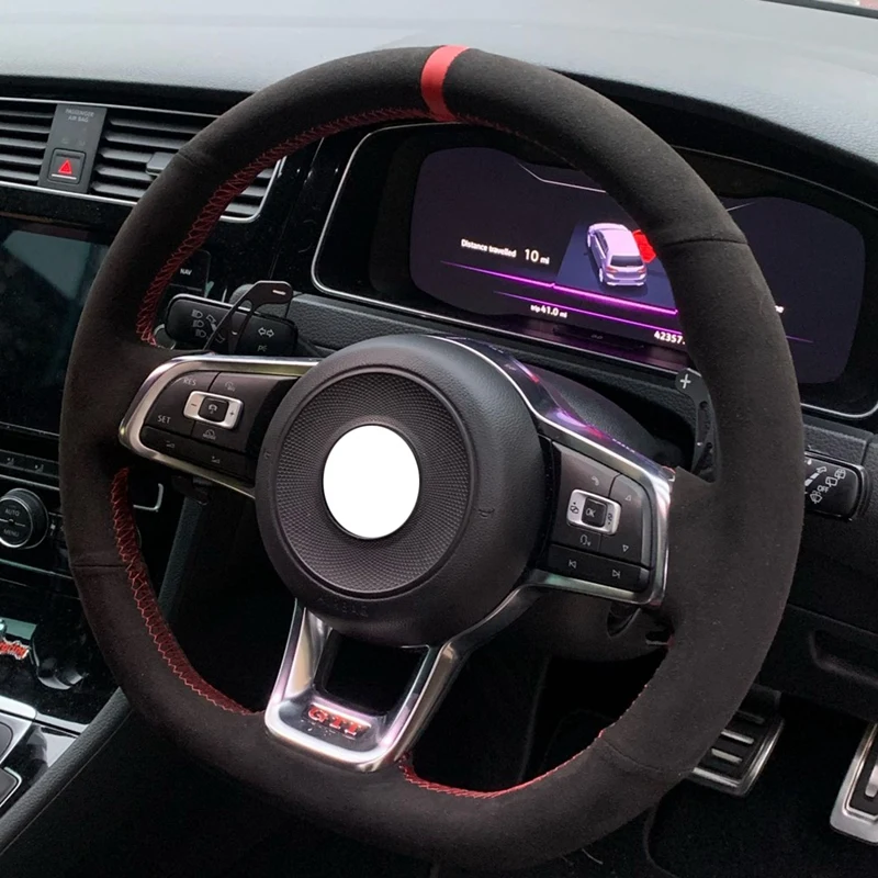 DIY чехол рулевого колеса автомобиля черная замша кожа ручной работы 38 см для-Golf 7 Mk7 New-Polo Passat B8