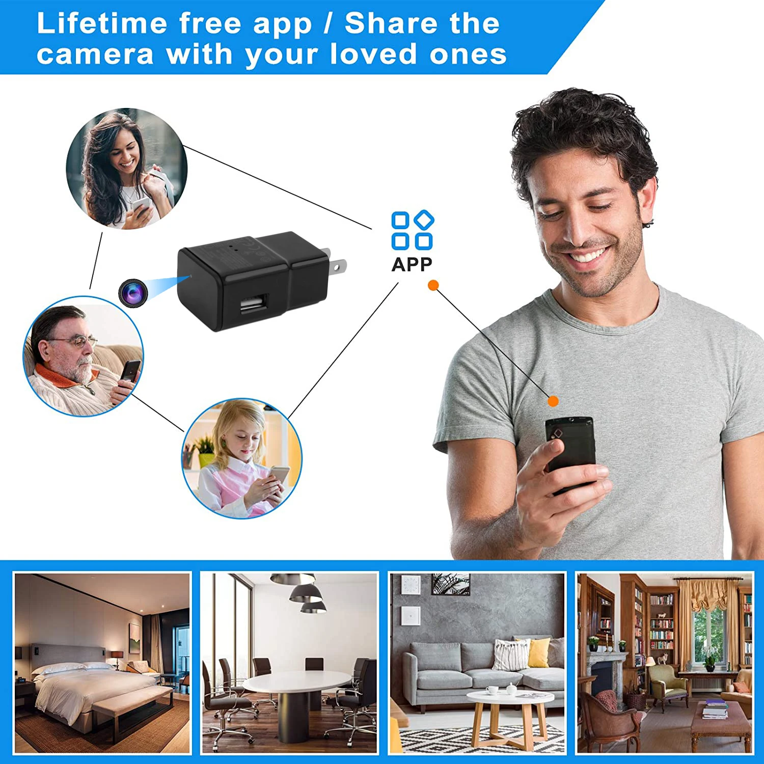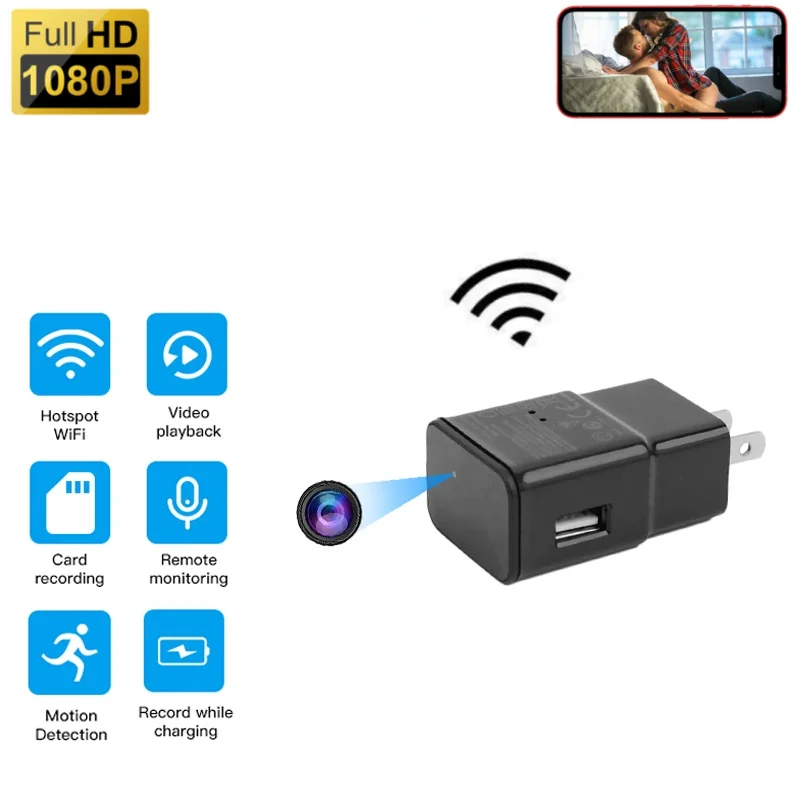1. Usb-зарядная камера: эта камера безопасности также является зарядным устройством USB, она может записывать видео в формате full HD 1080P во время зарядки устройства без обнаружения, следить за ребенком дома, офисные или автомобильные камеры безопасности, домашние животные, няня, вор или сотрудники.