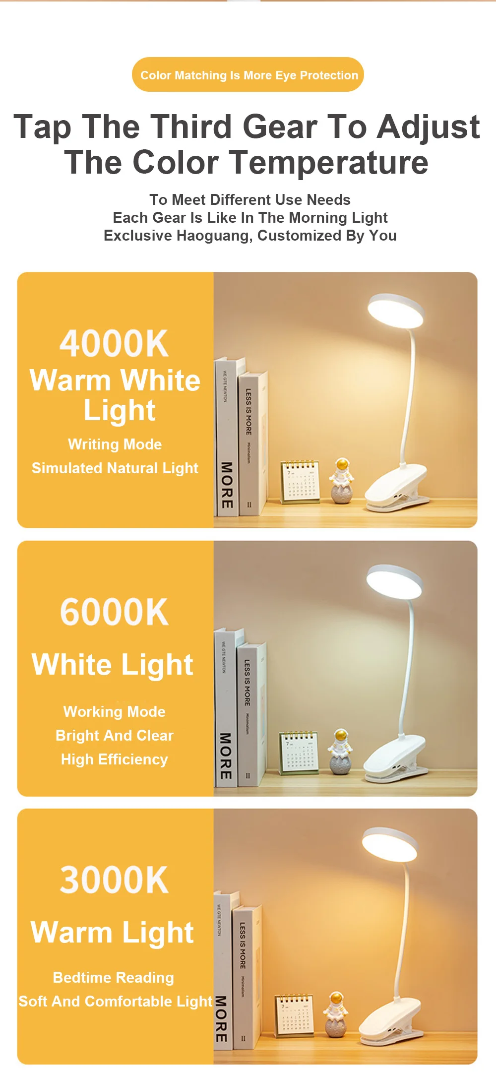 Приглушаемый светильник с 3 режимами работы, приглушаемый светильник с USB-зажимом для студенческого общежития, обучения, прикроватный флексографский светильник