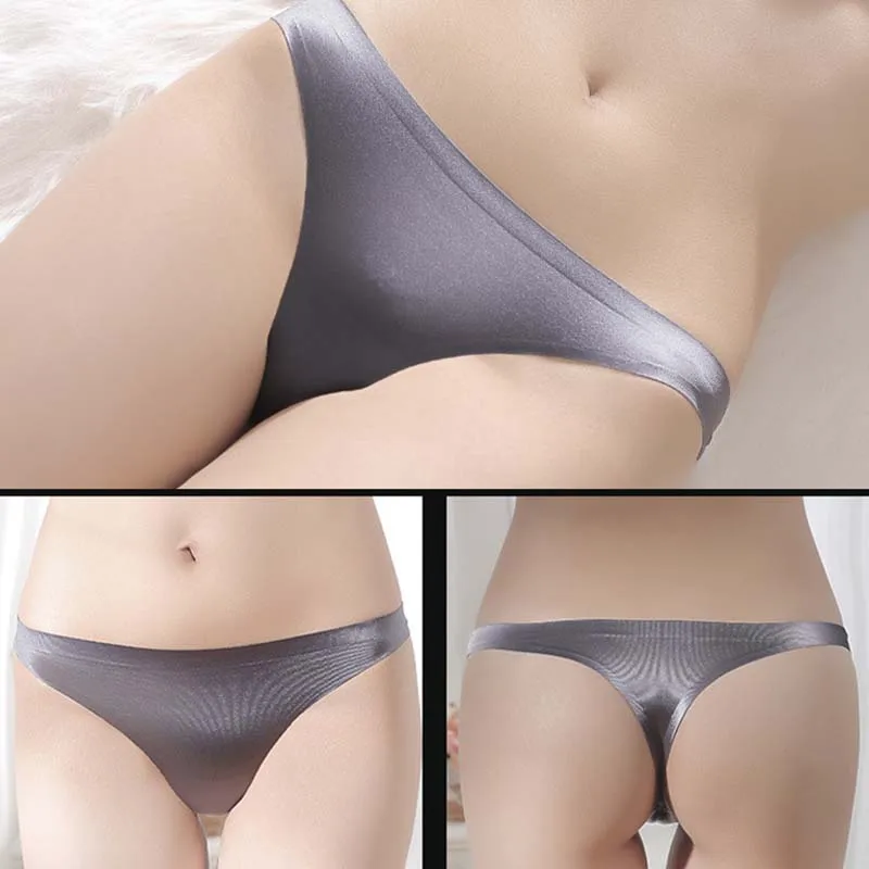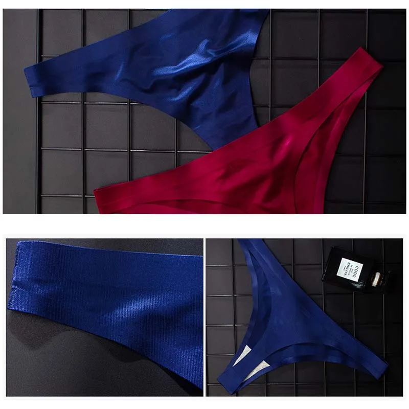 Стринги женские, шелковые, бесшовные, однотонные, большого размера