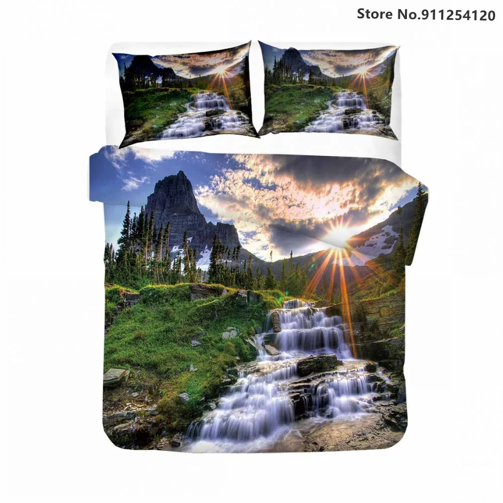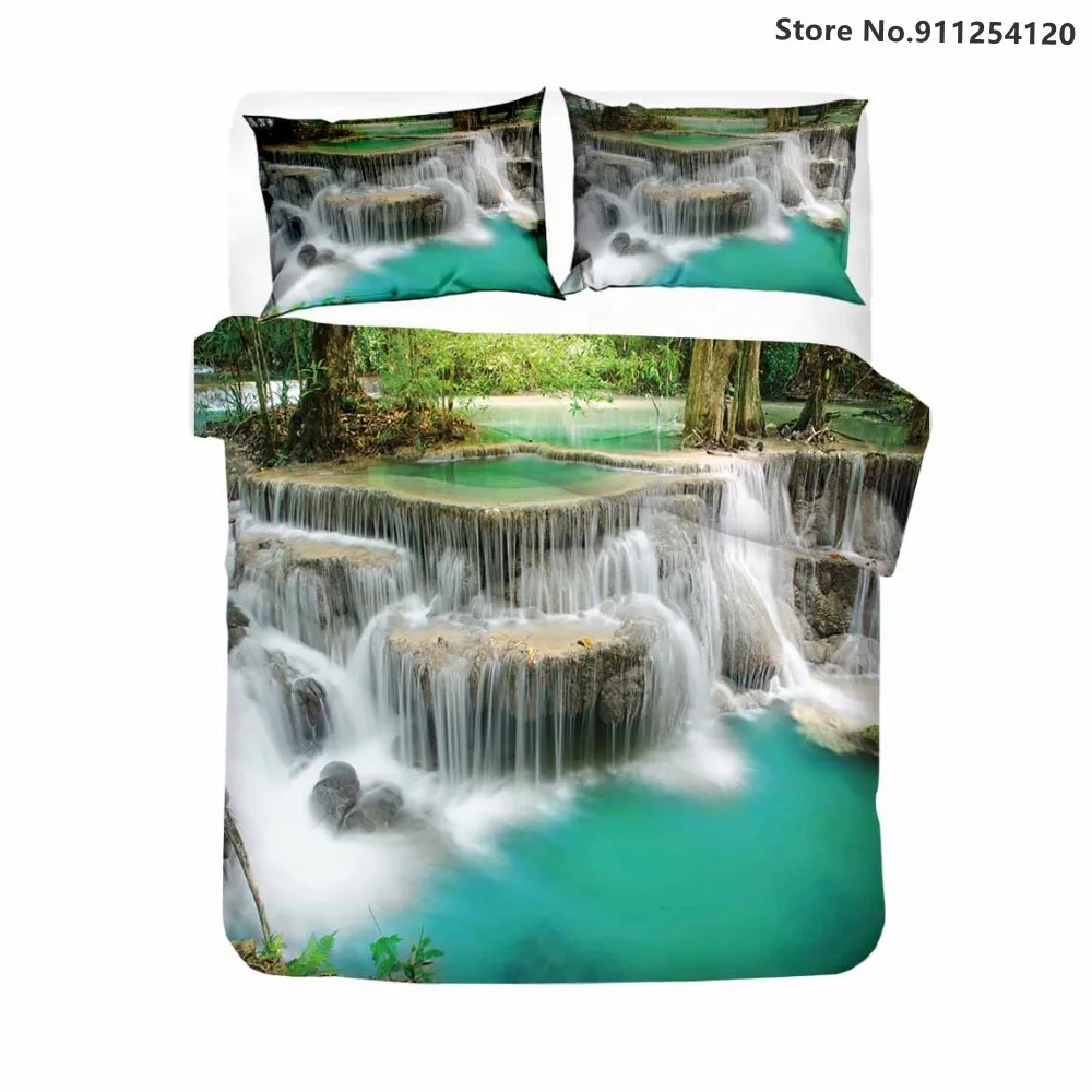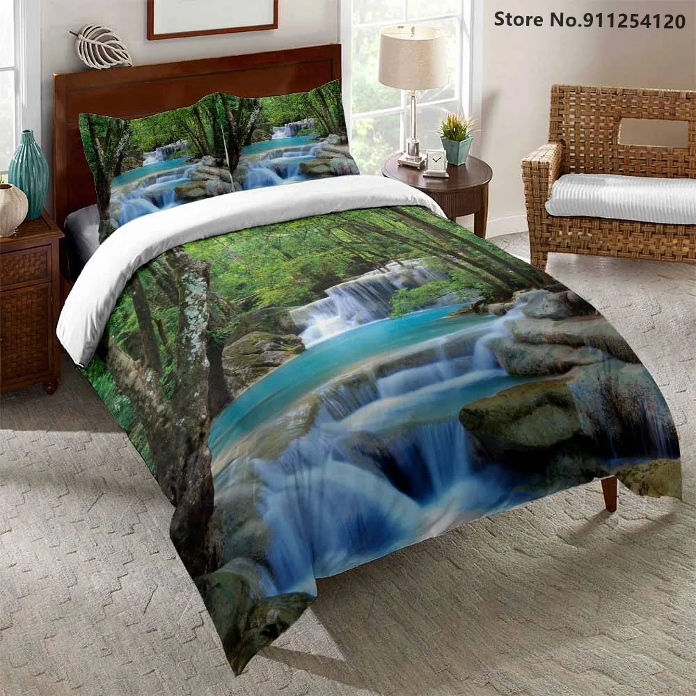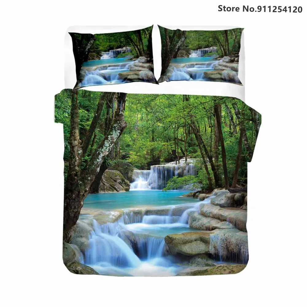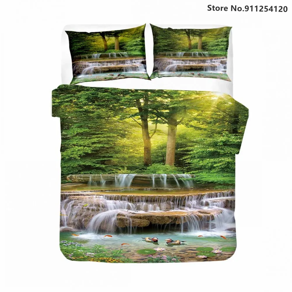 Комплект постельного белья из 23 предметов с красивым пододеяльником Водопад и 3D-принтом лесного дерева для девочек и мальчиков