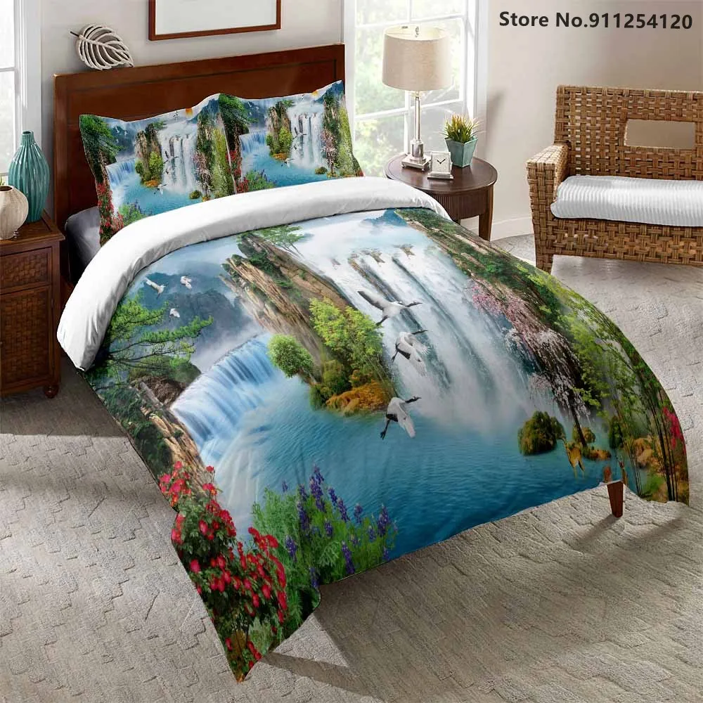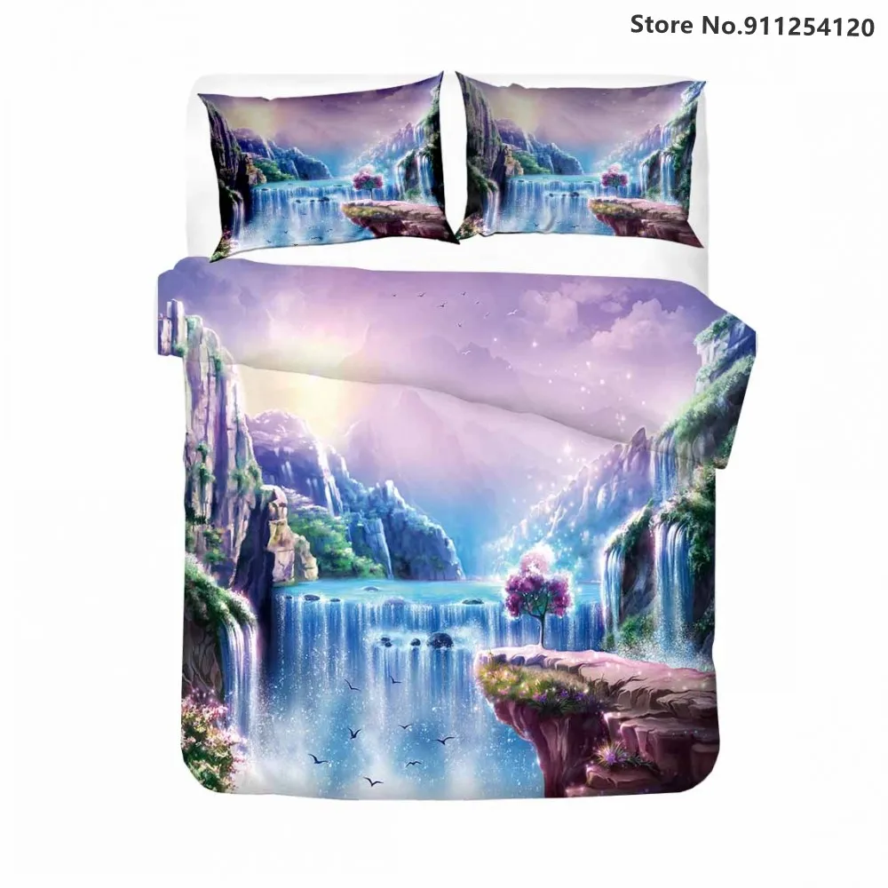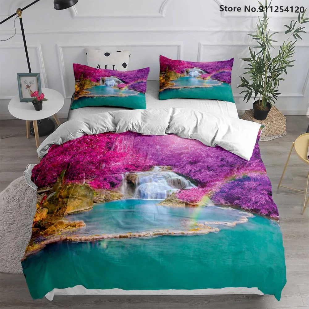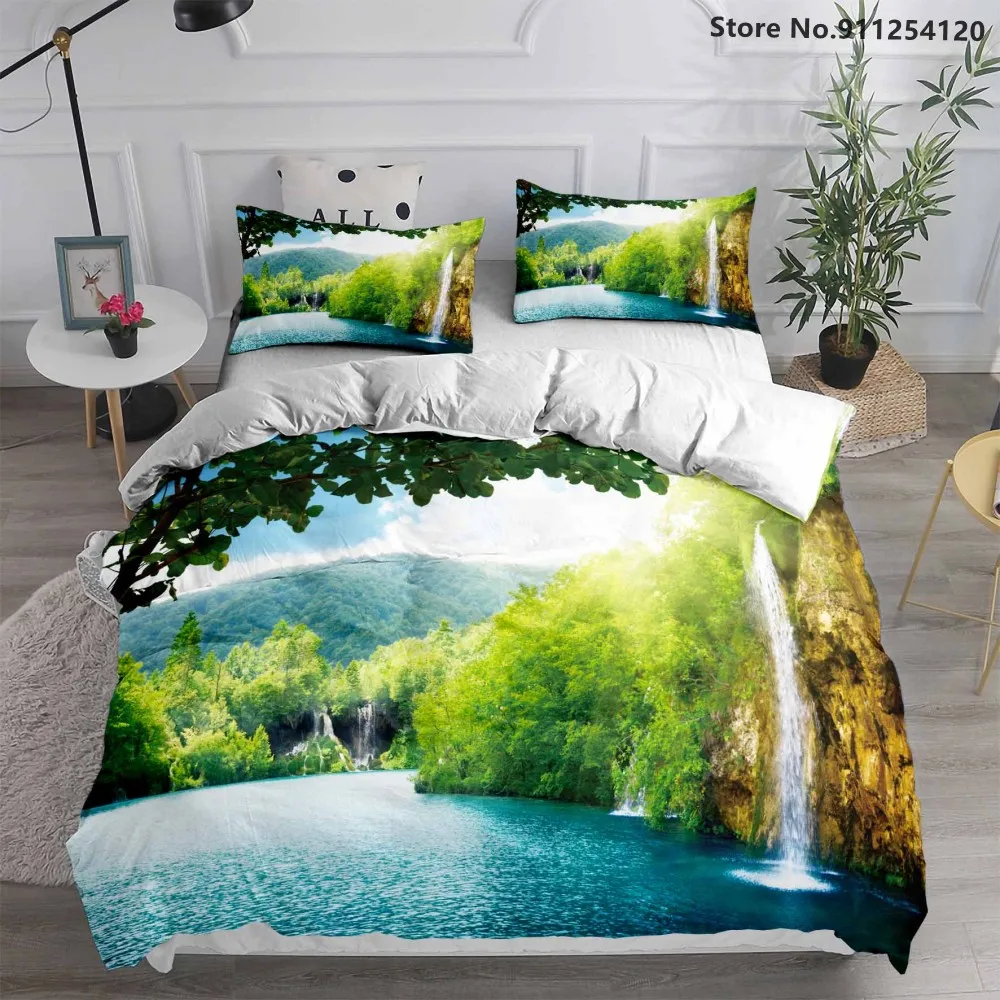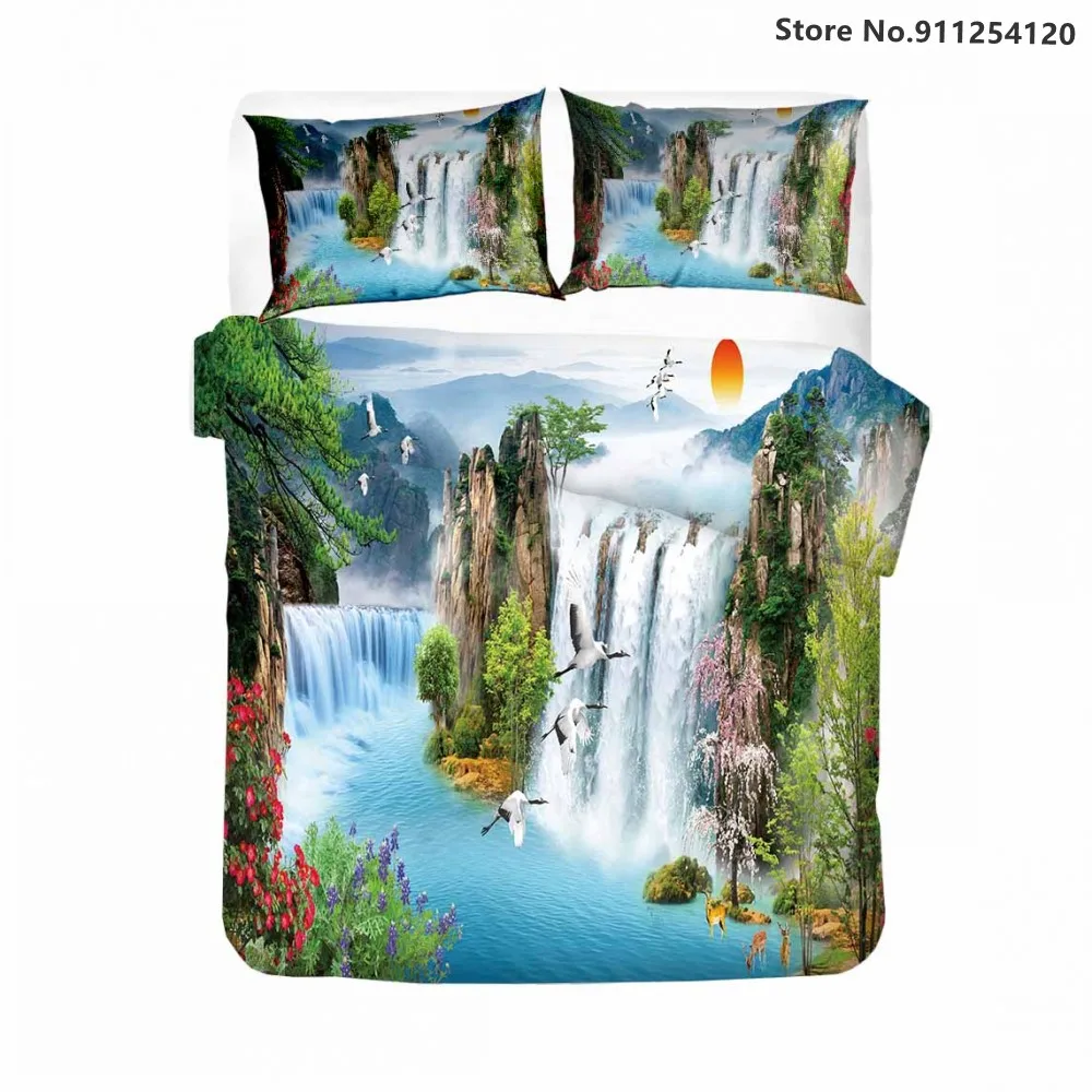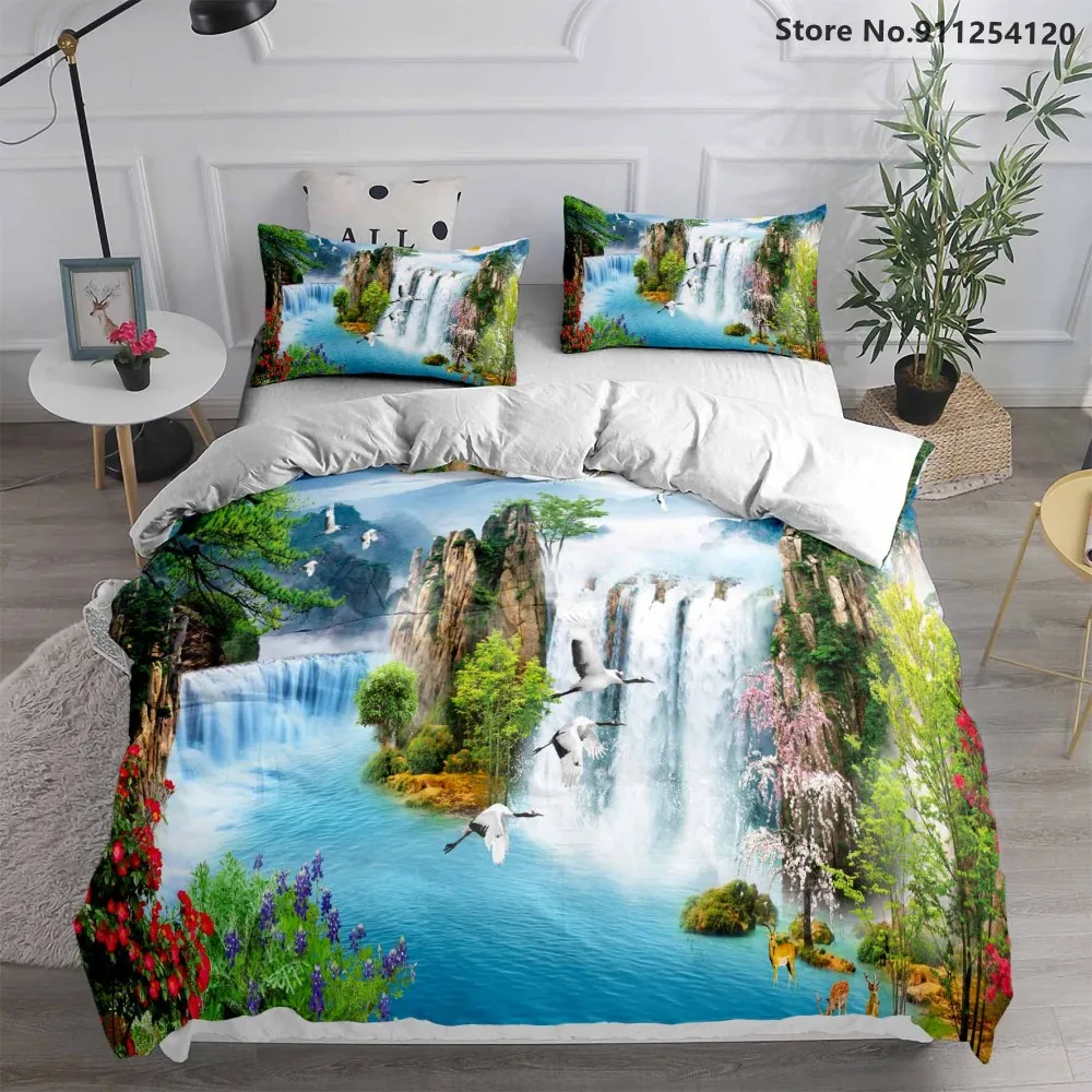 Комплект постельного белья из 23 предметов с красивым пододеяльником Водопад и 3D-принтом лесного дерева для девочек и мальчиков