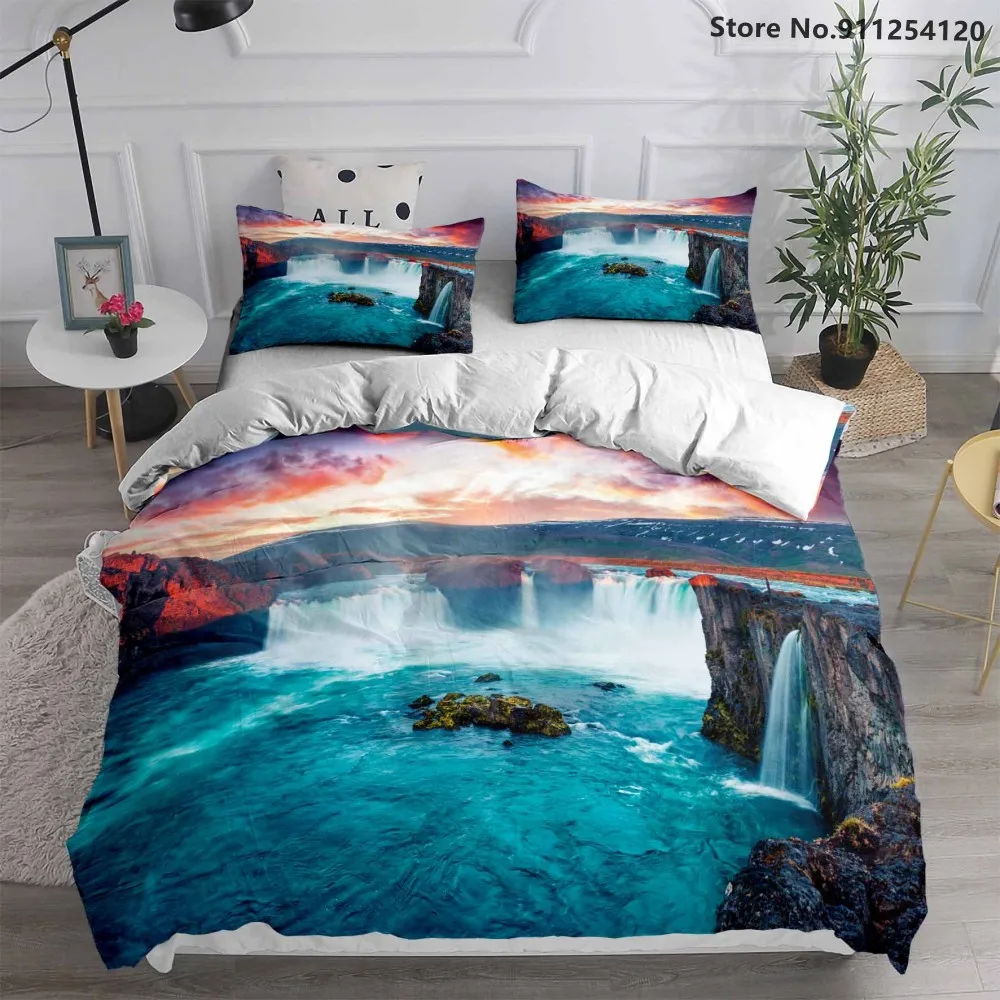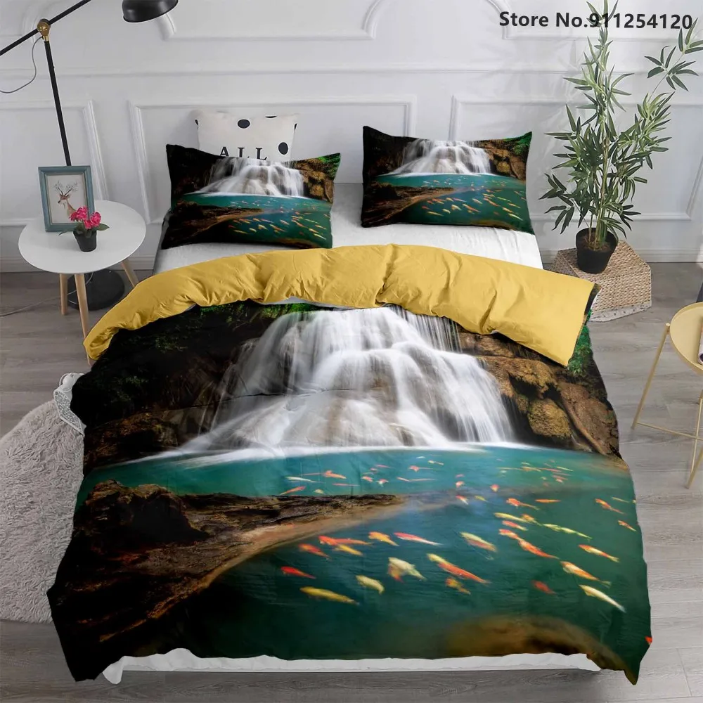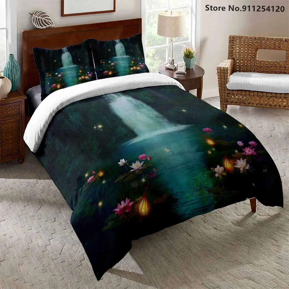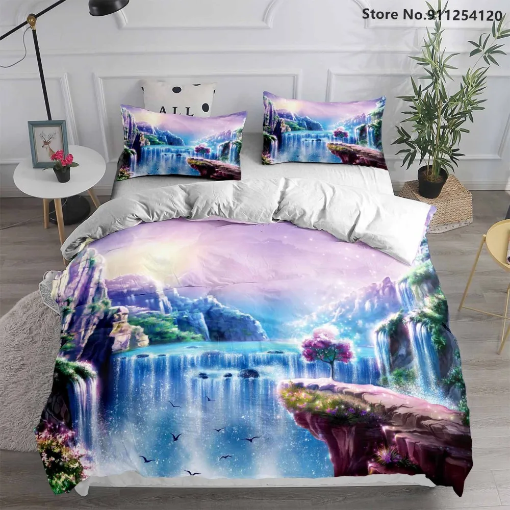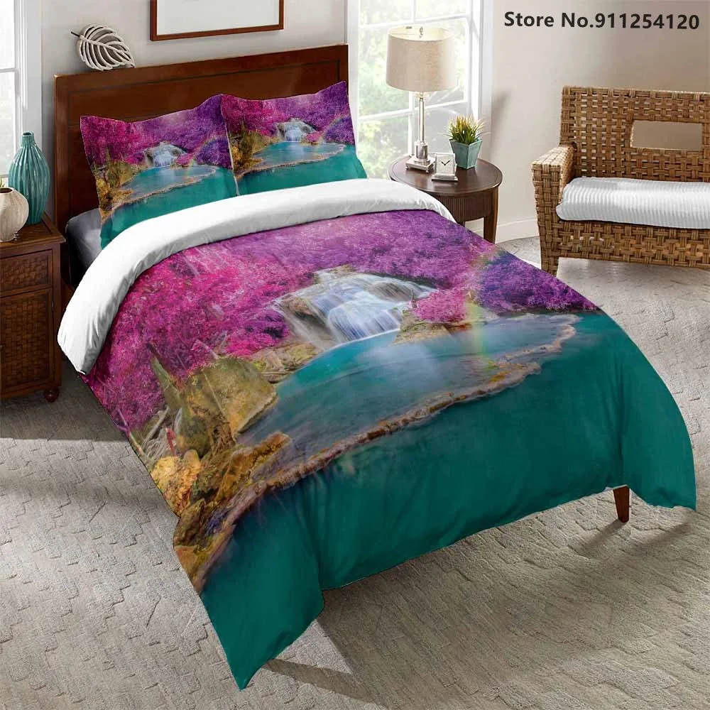 Комплект постельного белья из 23 предметов с красивым пододеяльником Водопад и 3D-принтом лесного дерева для девочек и мальчиков