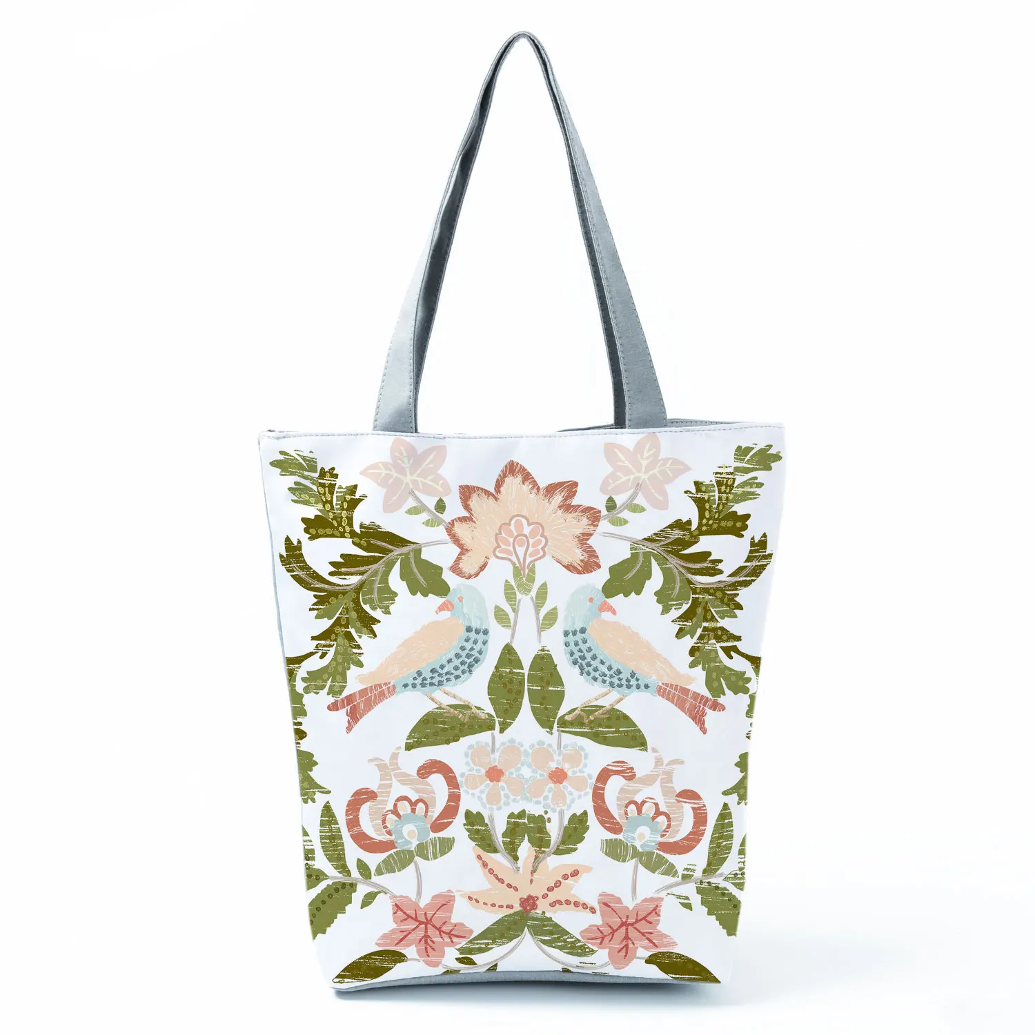 Сумка на плечо с животным растением, сумки с цветочным принтом и птицами, вместительная сумка для покупок, портативная пляжная сумка, Экологичная женская сумка-тоут