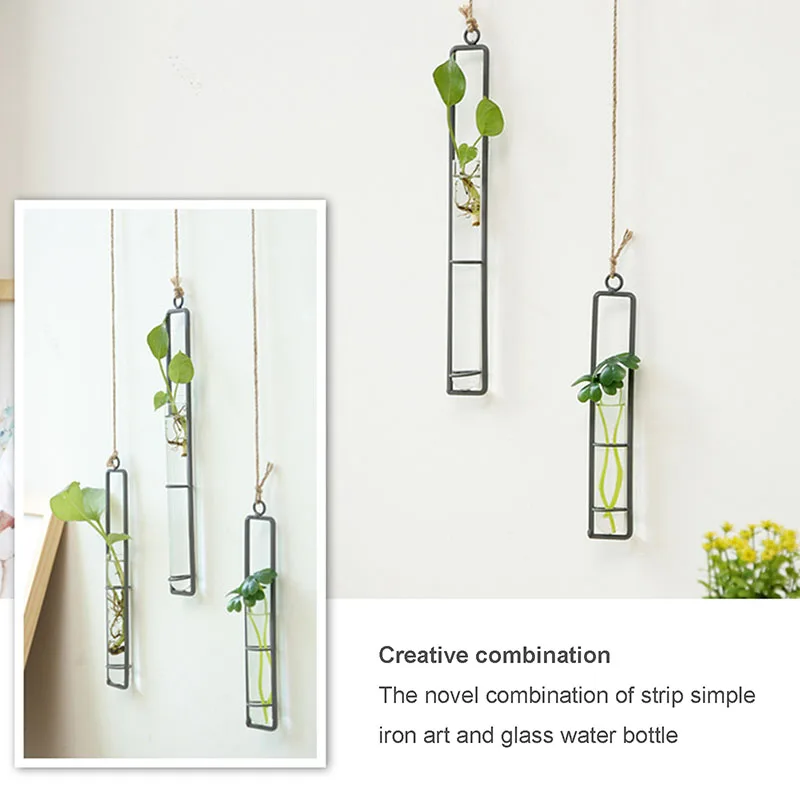 Украшение для дома прозрачная подвесная стеклянная плантаторная водная железная художественная гидропонная ваза пробирка креативная Цветочная подвесная бутылка