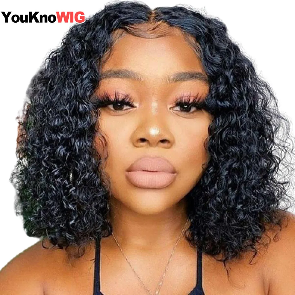 Короткие кудрявые парики из натуральных волос на фронте, парики из бразильских волос с влажной и волнистой окантовкой 4x4, парики для женщин, парики с кружевной окантовкой