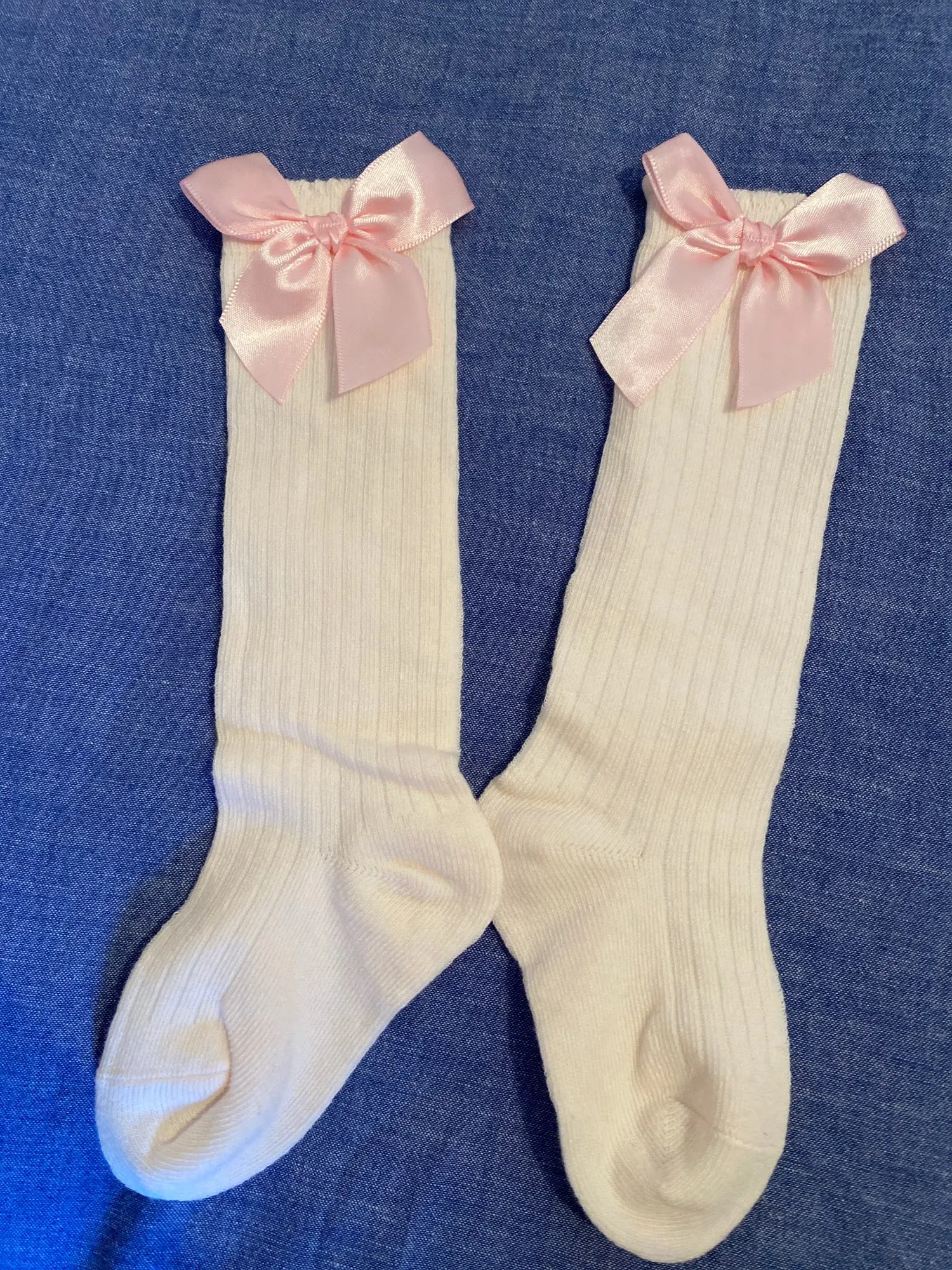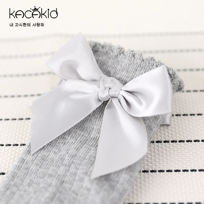 Оптовая продажа, весенние новые детские носки, монохромные полосатые носки с пузырьковым ртом для девочек, детские хлопковые носки с бантом, принцесса