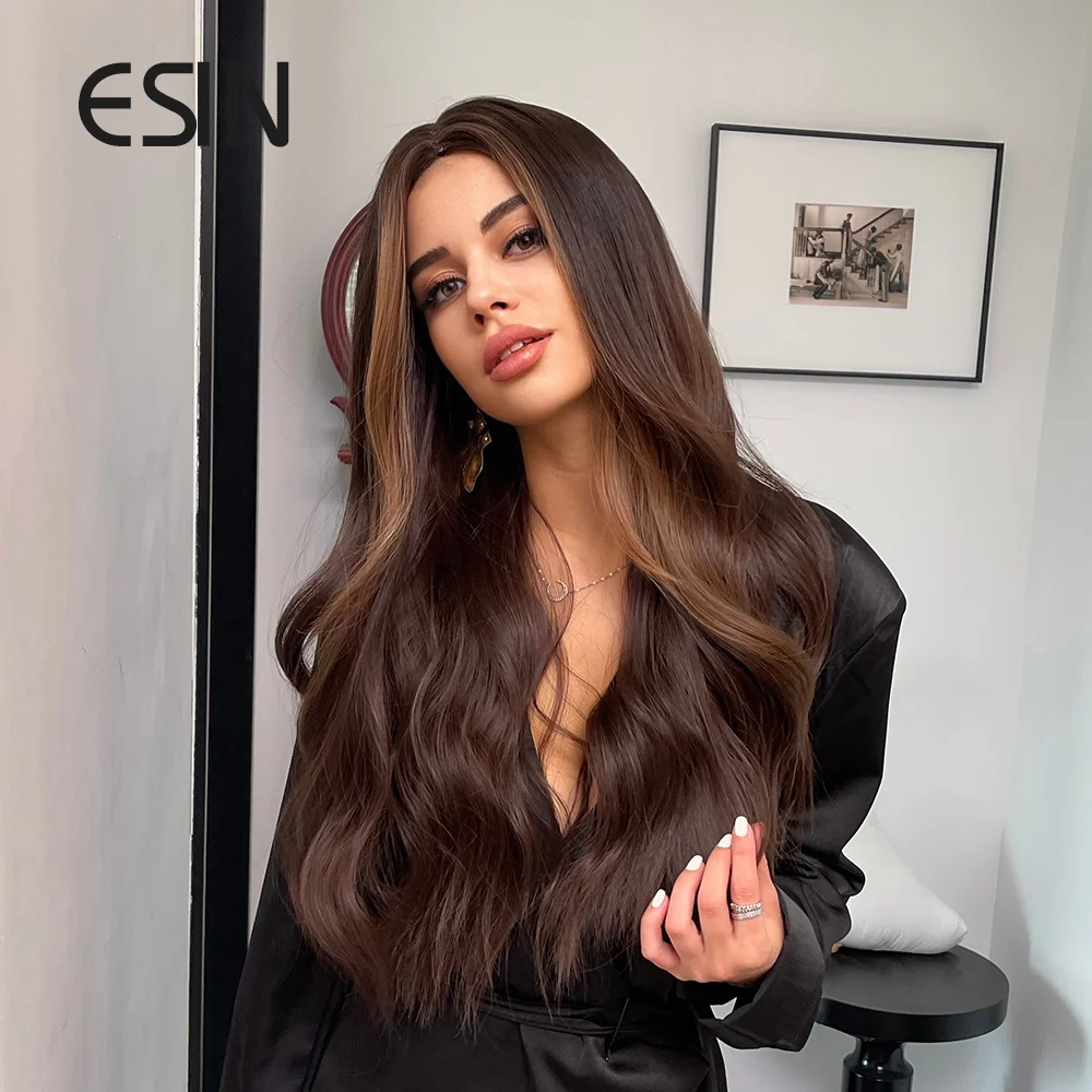 ESIN синтетические волосы длинные волнистые Омбре темно-коричневые парики средней длины для женщин натуральные праздничные термостойкие