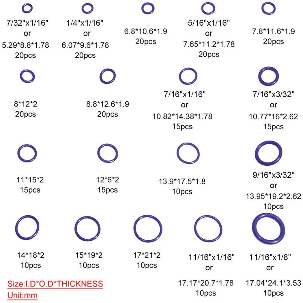 270 шт. резиновое уплотнительное кольцо для кондиционера, набор в ассортименте, фиолетовый воздушный кондиционер, 18 размеров, комплект для газировки для автомобильной двери, окна