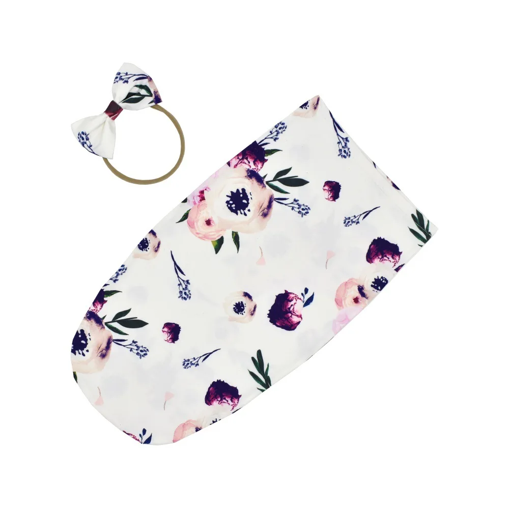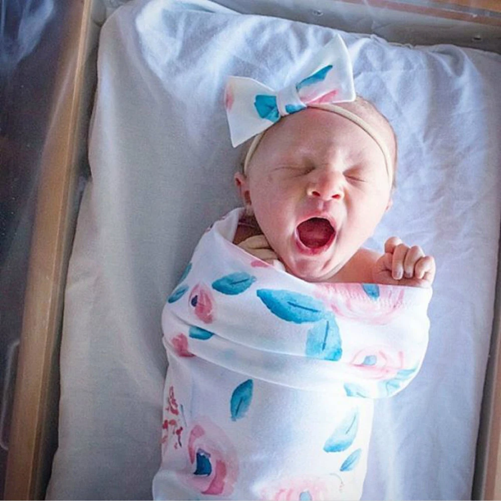 Пеленка для новорожденных, пеленка с бантом, с принтом цветов, спальный мешок для новорожденных