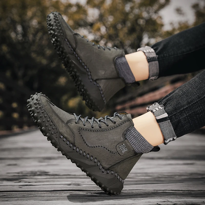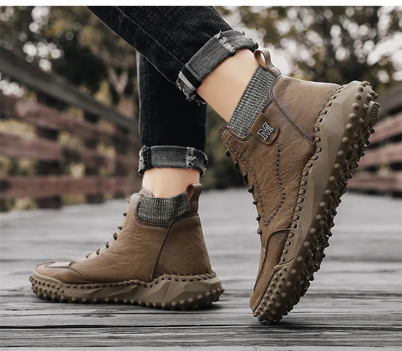 Мужские Водонепроницаемые ботинки ручной работы, коричневые ботильо...