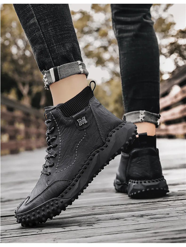Мужские кожаные ботинки на толстой плюшевой подкладке, Черные ботил...