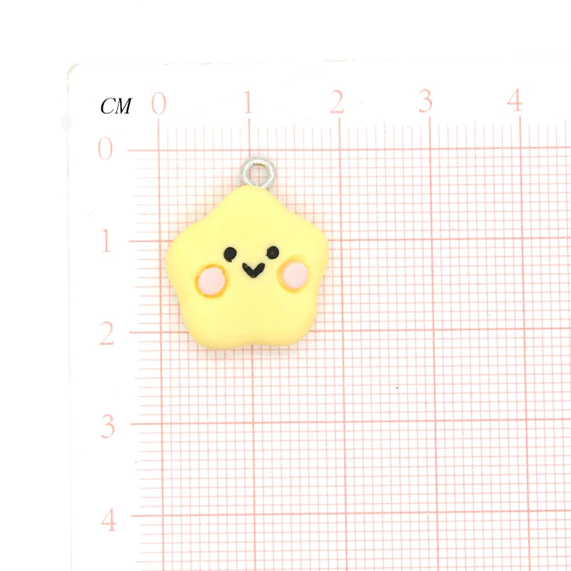 10 шт. кавайные желтые Подвески с улыбающимся лицом и пентаграммой из смолы, милые мини серьги, игрушки, декоративные подвески сделай сам, Детская бижутерия