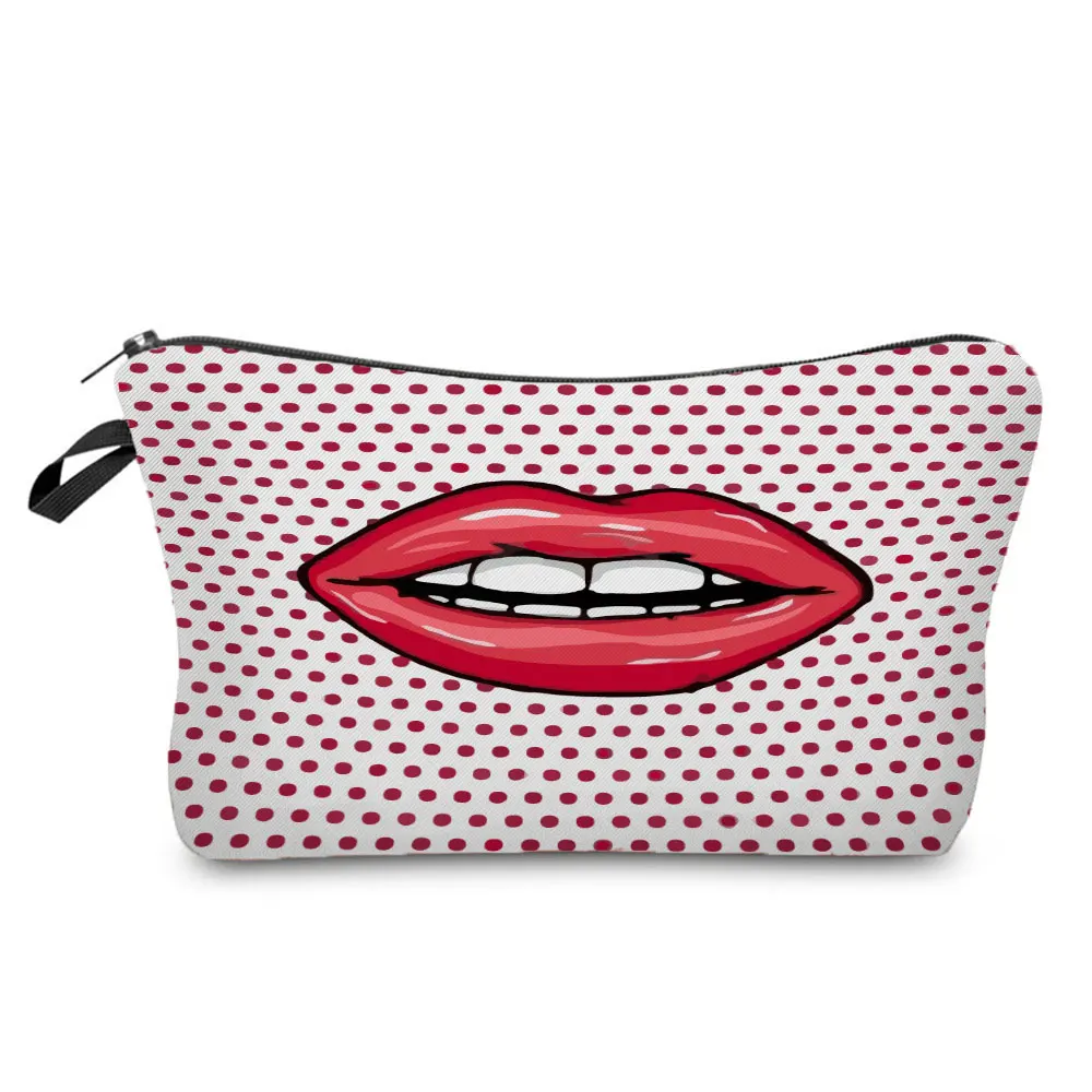 Косметичка в горошек с красными губами, модные косметички, высококачественные Пеналы, лидер продаж, женская сумка, портативный органайзер для женщин