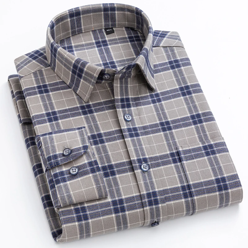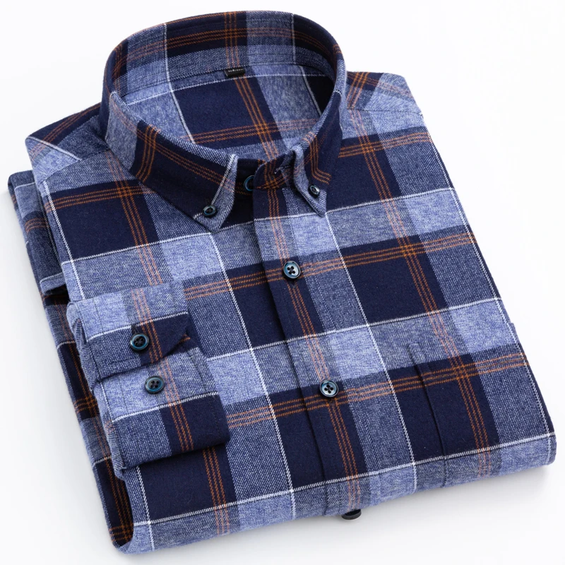 Мужская Фланелевая рубашка, Классическая, с длинными рукавами, нашивка для рубашки, нагрудный карман, мягкая, матовая, хлопковая, плотная, Повседневная