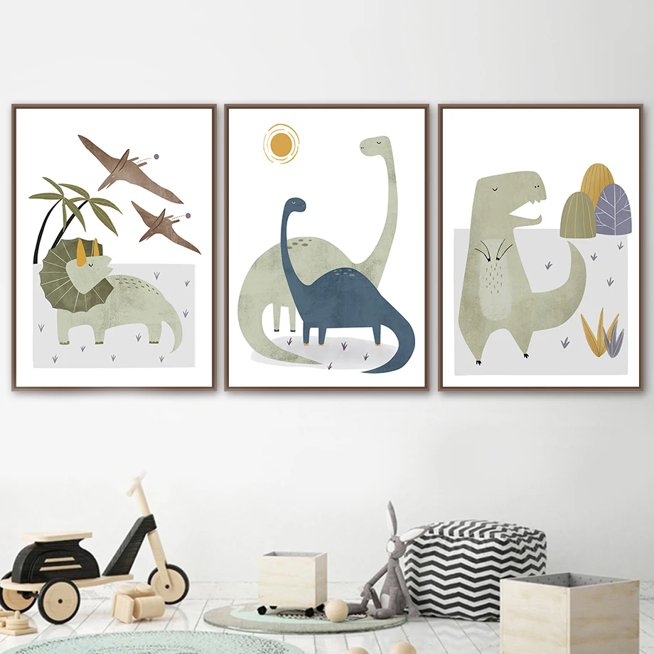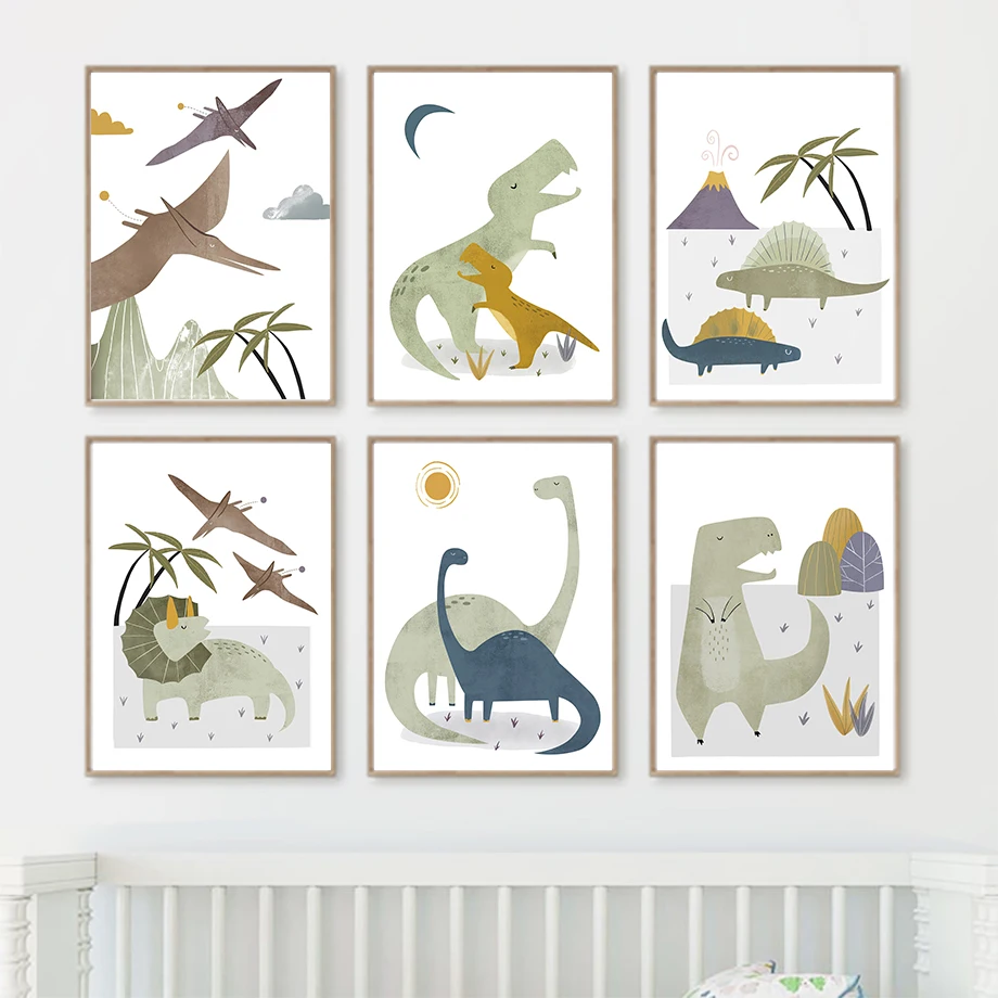 Милые Мультяшные динозавры Пальма гор солнце скандинавские плакаты и принты Настенная картина на холсте настенные картины декор для детской комнаты