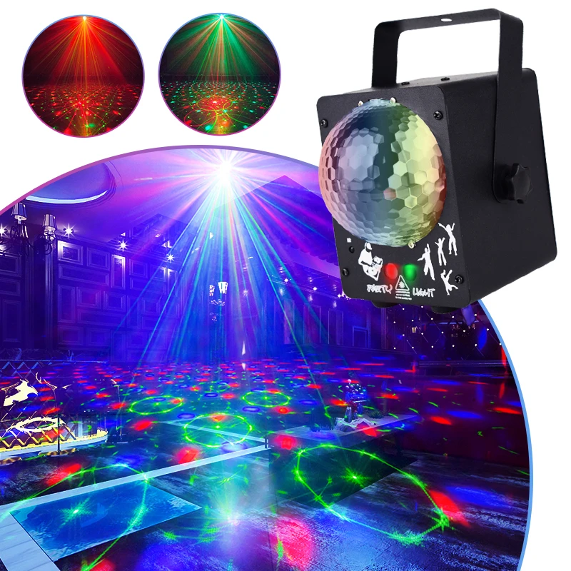 Диско-проектор DJ светодиодный сценический, прожектор со звуковым контроллером и лучом, лазерный шар, освещение для бара, караоке, украшение для вечеринки