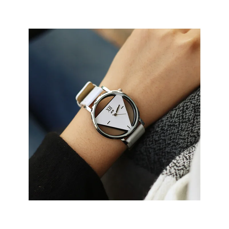 Часы женские кварцевые с кожаным ремешком, простые оригинальные креативные модные наручные, с треугольным циферблатом с отверстиями, чёрные белые