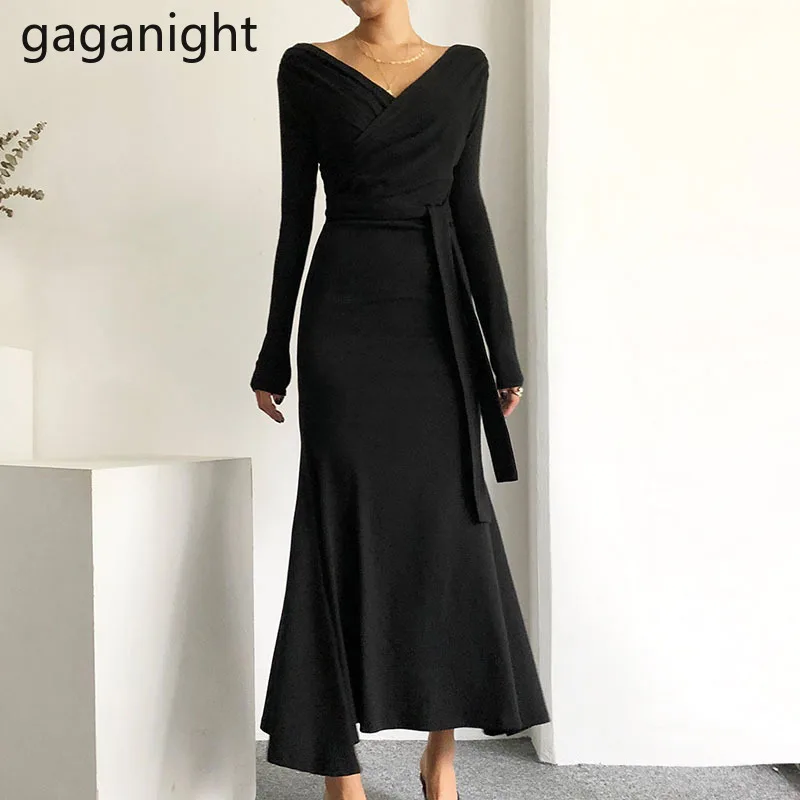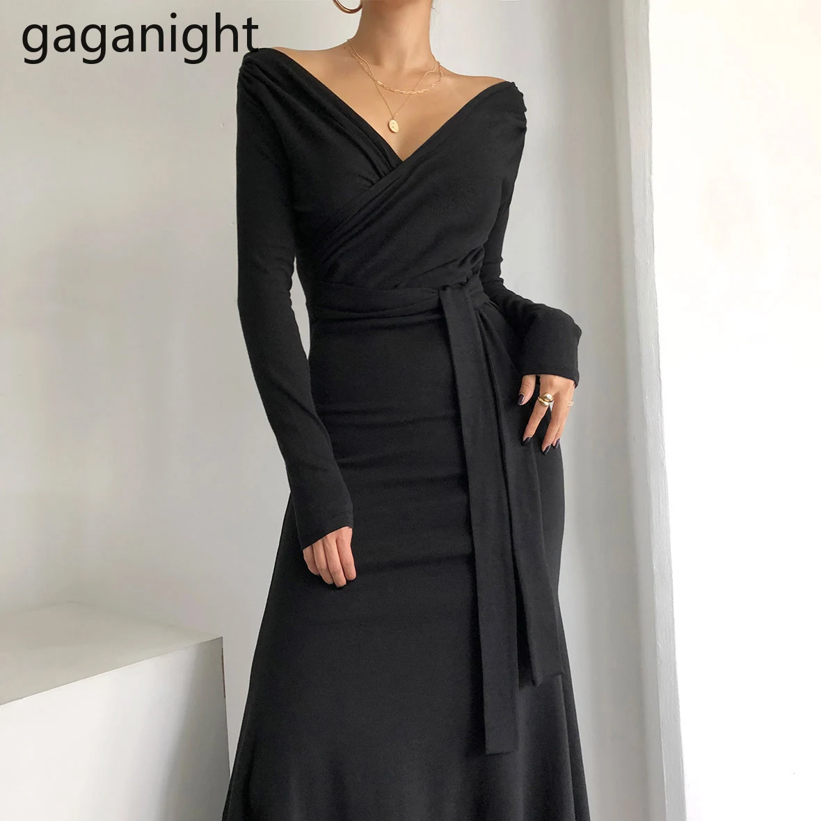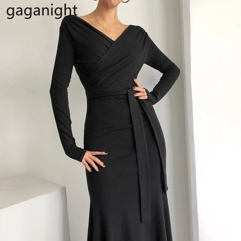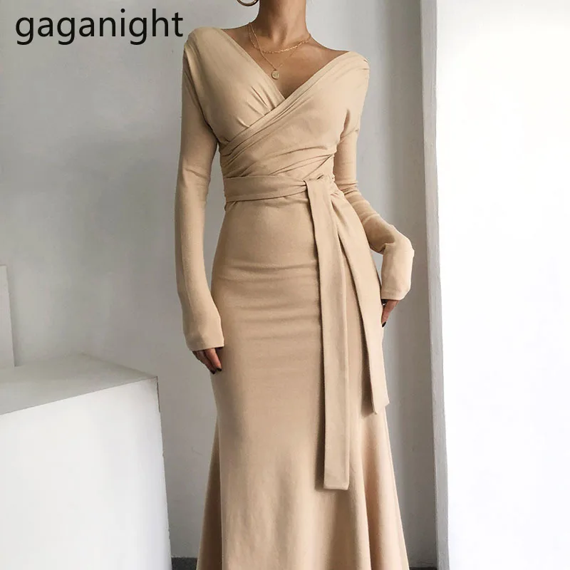 Gaganigt Сексуальное Женское облегающее вечернее платье с V-образным вырезом однотонные модные корейские платья OL шикарные новые платья дропшиппинг женское платье