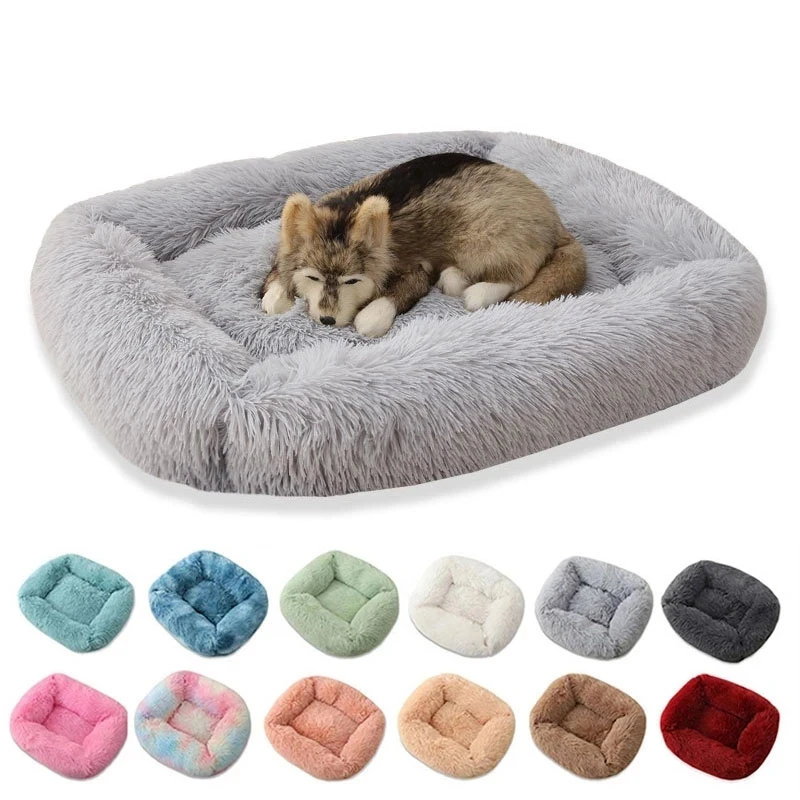 Квадратные лежанки для собак, Длинные Плюшевые однотонные лежаки дл...