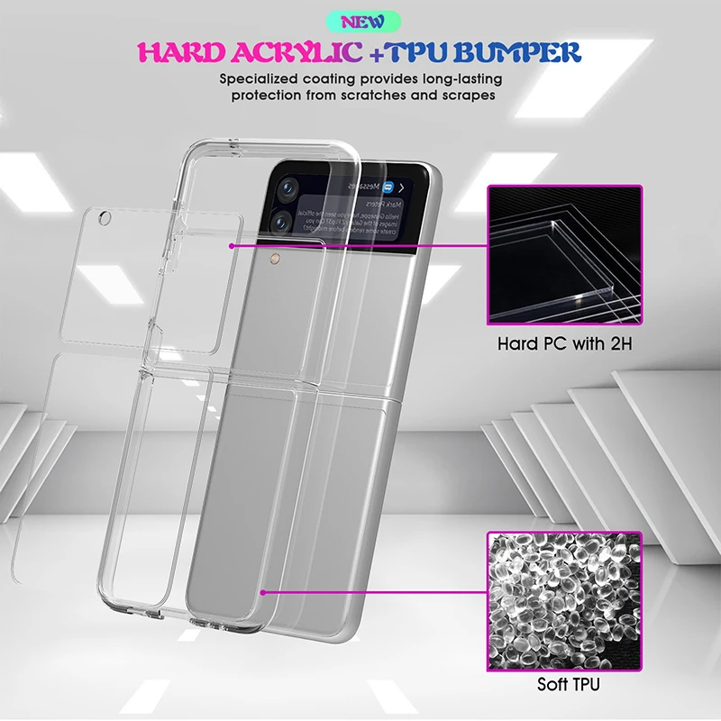 Складной ультратонкий защитный противоударный Прозрачный чехол для Samsung Galaxy Z Flip 3 TPU + PC