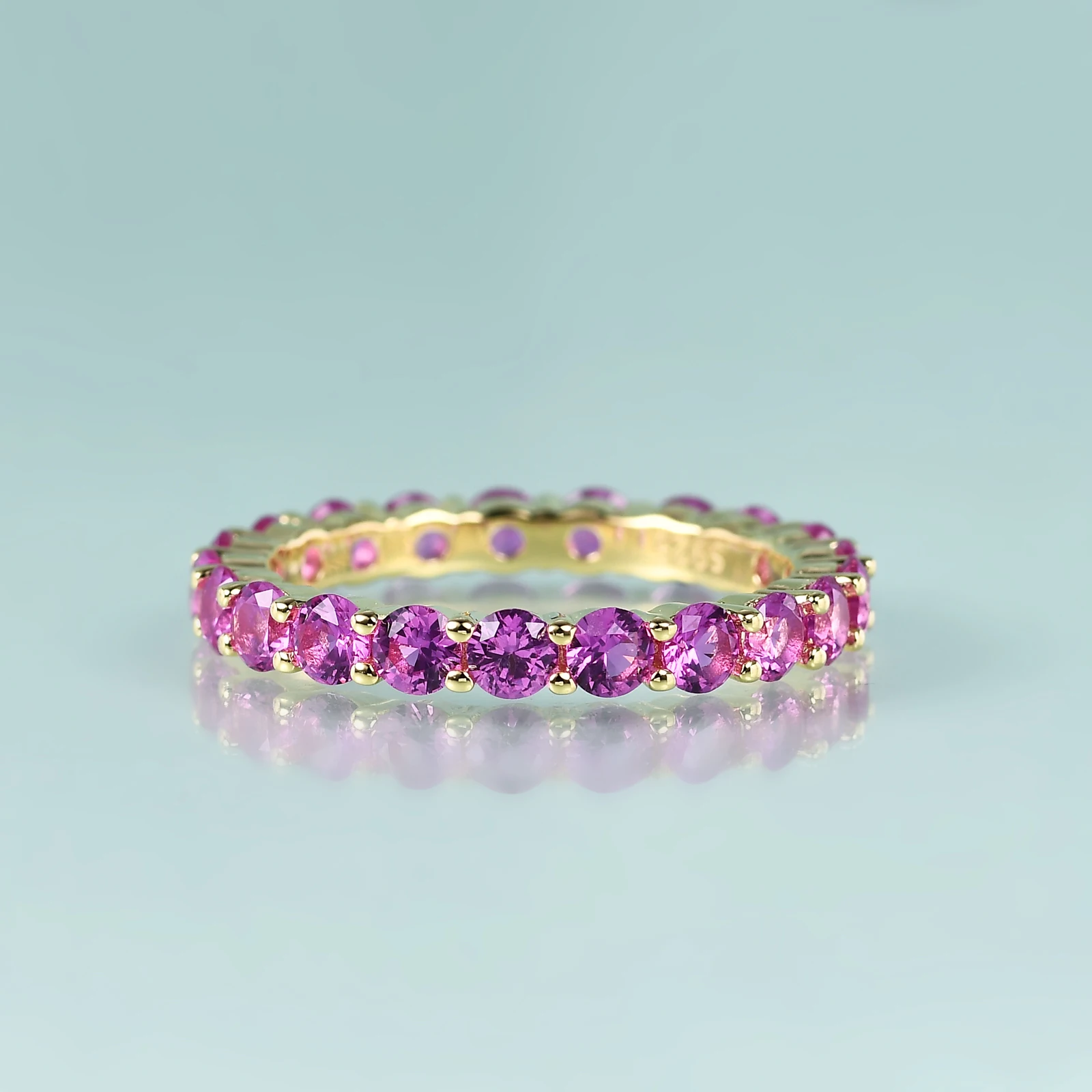 Кольца из серебра 925 пробы с золотым наполнителем, с розовым сапфиром