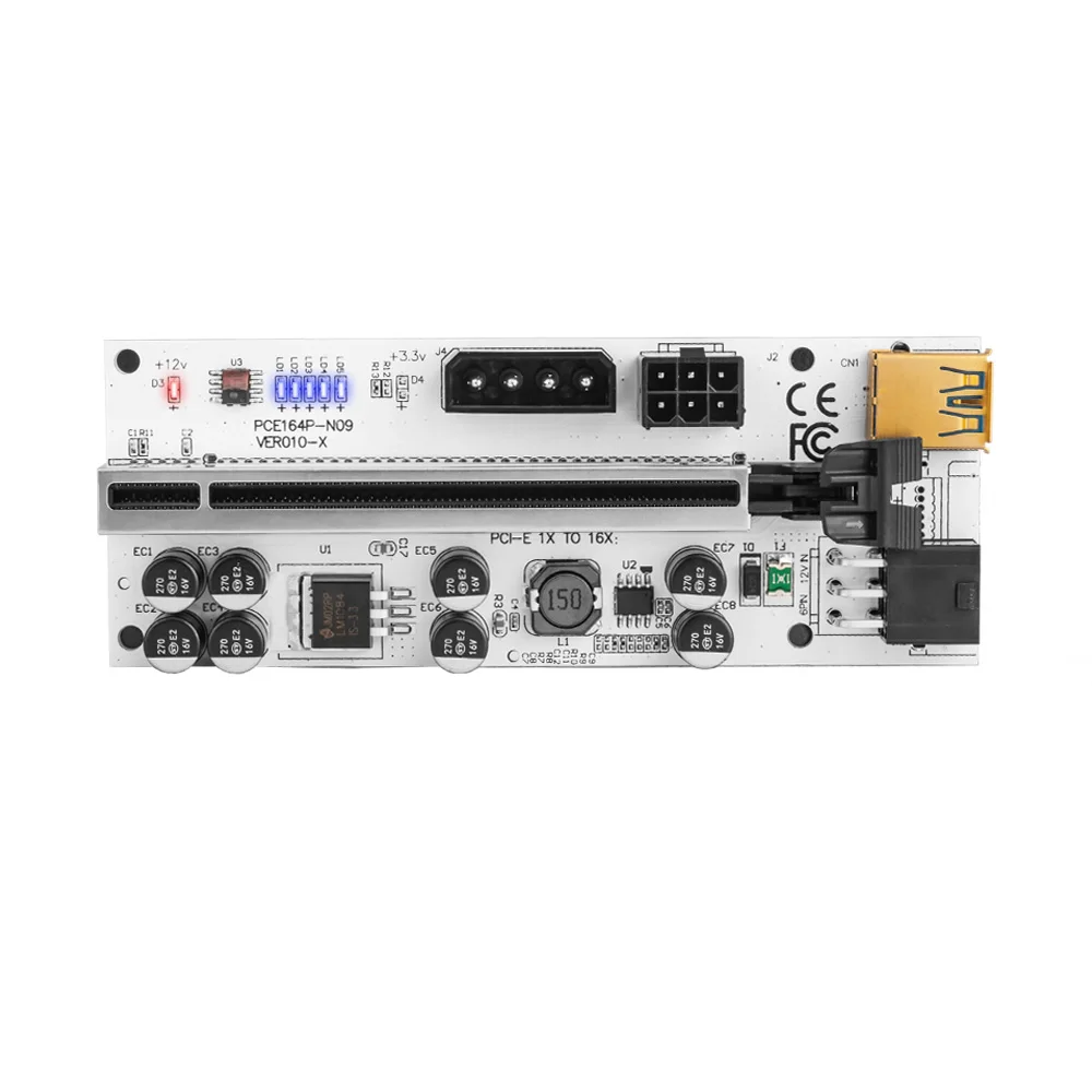 Наборы переходников версии 010X-это новейшее и верхнее линейное решение для настройки горных установок GPU. 4PIN и две графические карты 6PIN интерфейс являются необязательными для питания, что обеспечивает независимое питание графической карты и уменьшает нагрузку на материнскую плату при использовании большего количества графических карт. Светодиодный дисплей, 8 твердых конденсаторов, 60 см USB 3,0 кабель, подходит для всех оконных систем, LINUX и MAC.