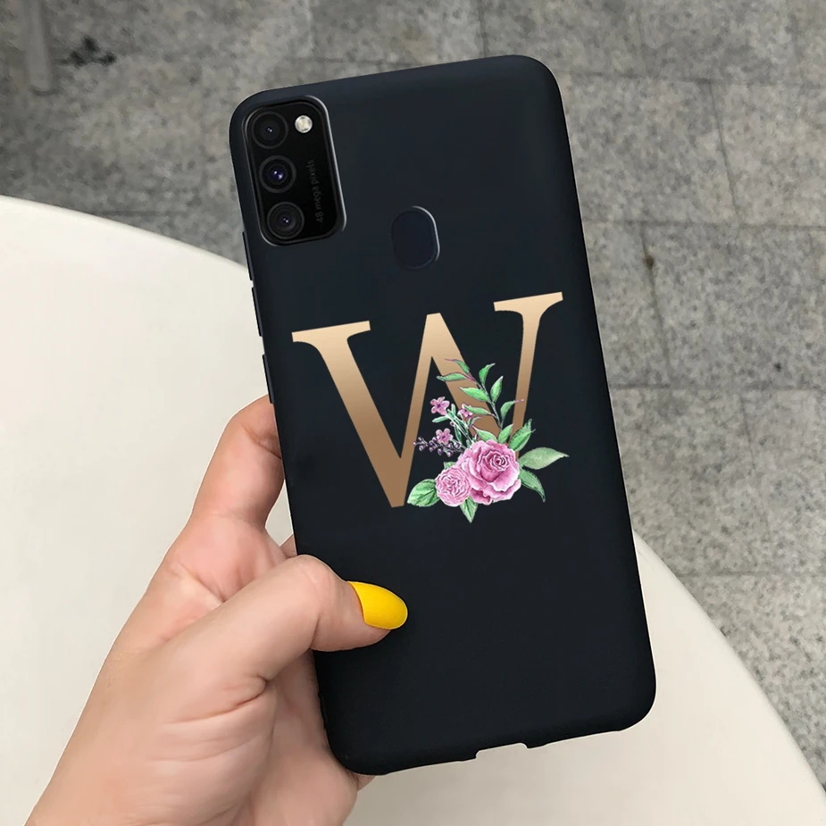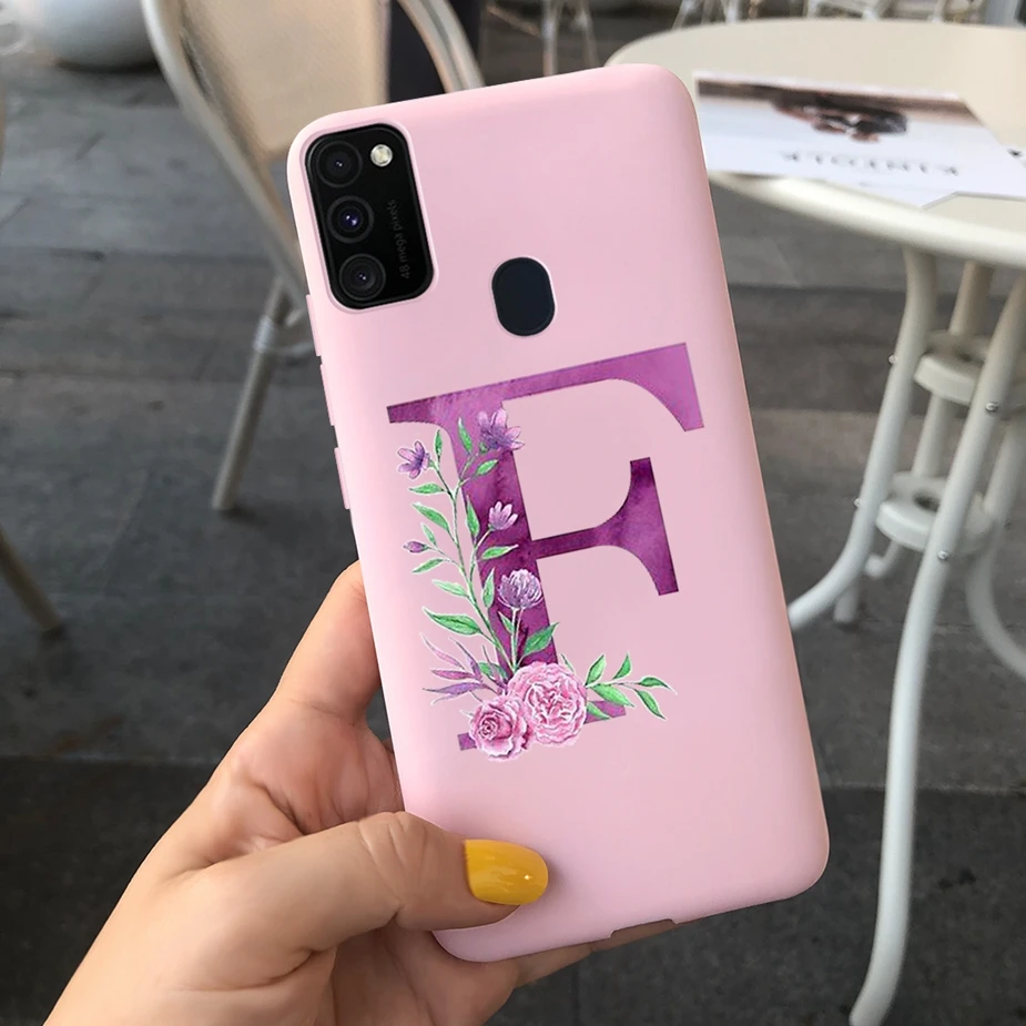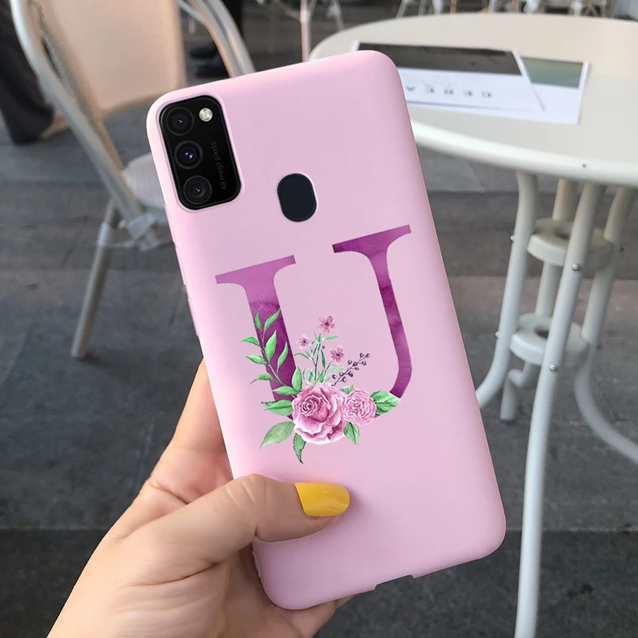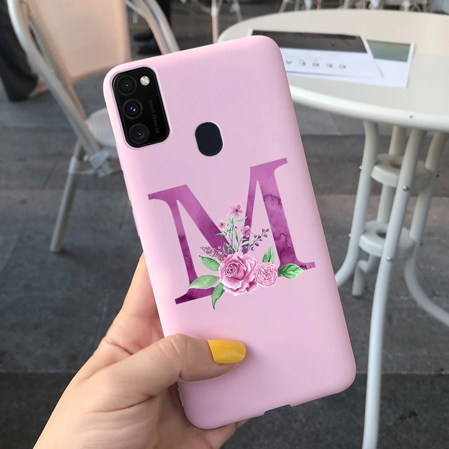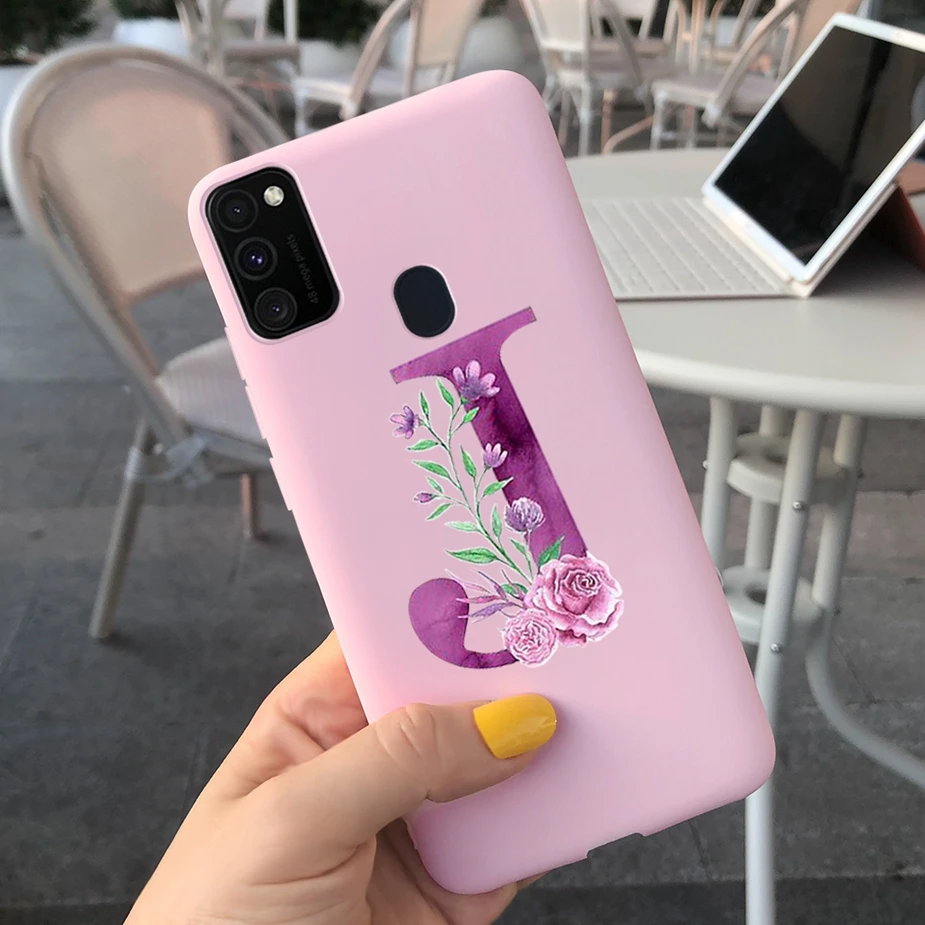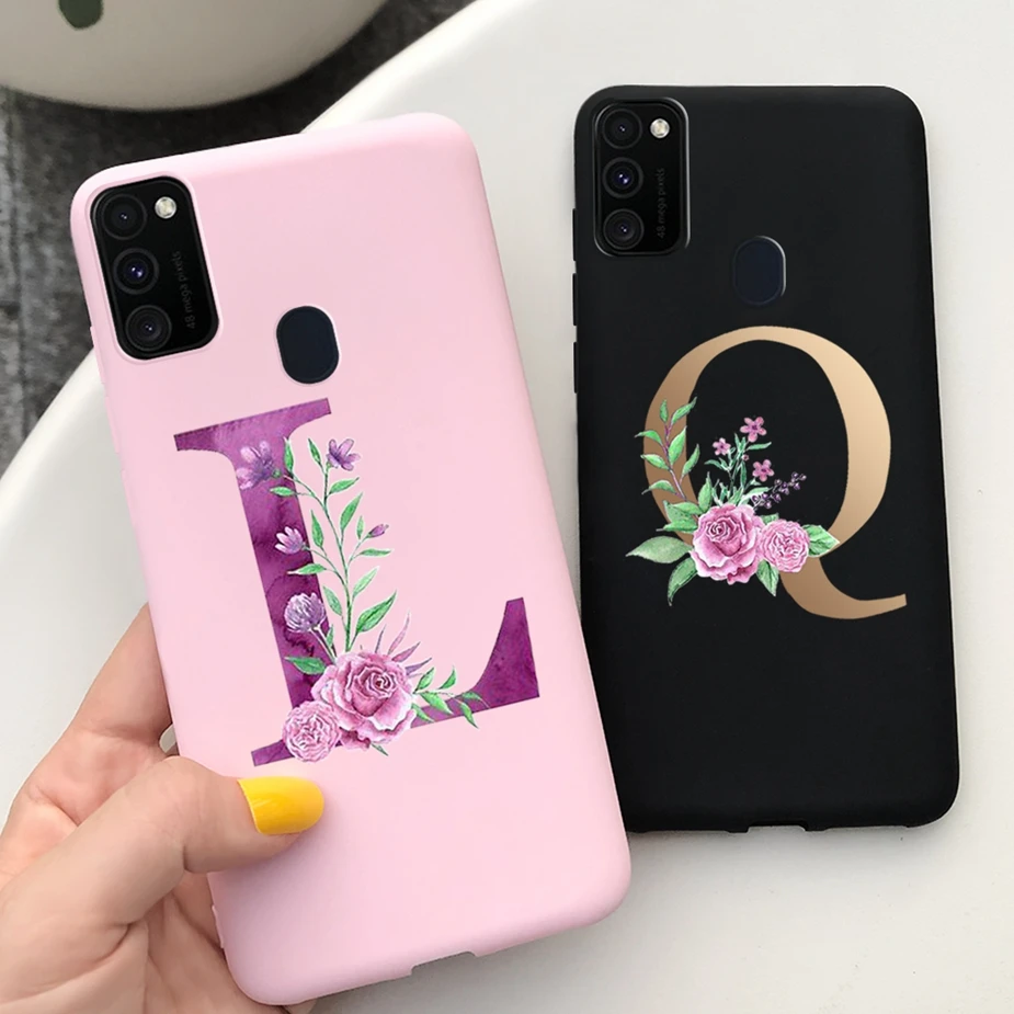 Чехол для Samsung M30s Galaxy M21 2021, Мягкая силиконовая задняя крышка, милые чехлы для телефонов с 26 буквами для Samsung M21 M30s M 21, чехлы