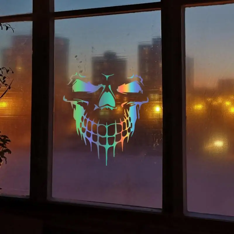 Новинка 2021, наклейка в виде черепа, декоративная наклейка на стену из ПВХ для Хэллоуина, ужасов, гримаса, двери, окна, товары для вечеринки, наклейка, украшение для дома