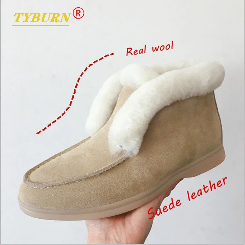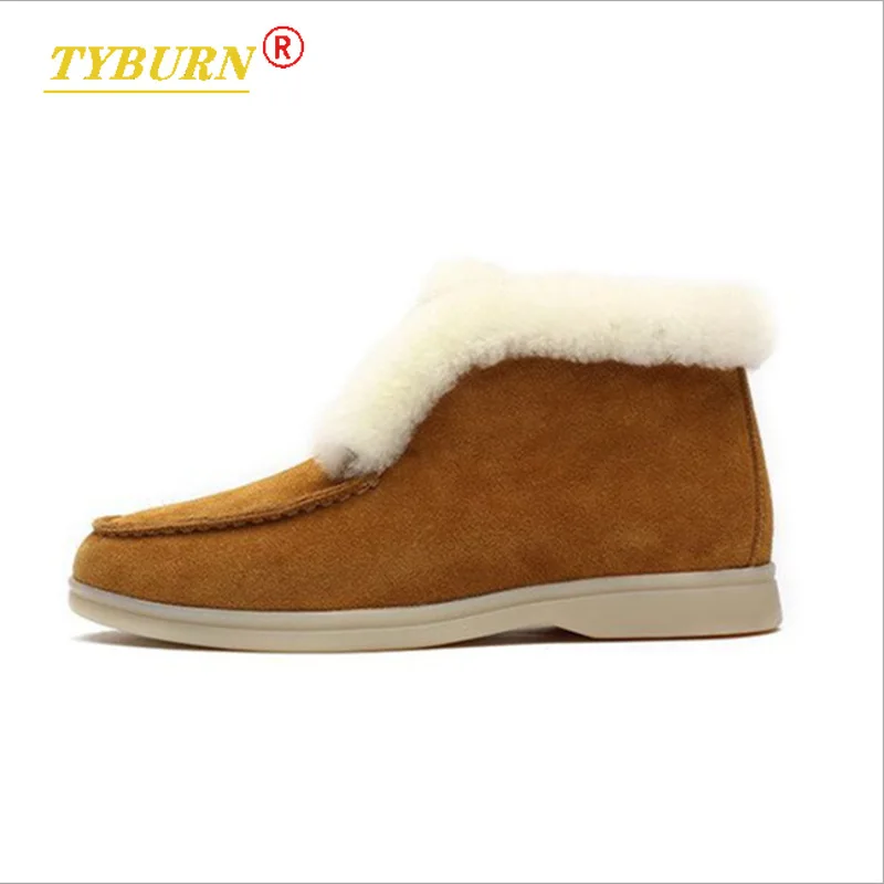 Новинка 2021, женские ботинки, Зимние Замшевые теплые женские зимние ботинки, удобные кожаные ботинки на плоской подошве и шерстяной подкладкой, женская обувь, толстые ботинки телесного цвета