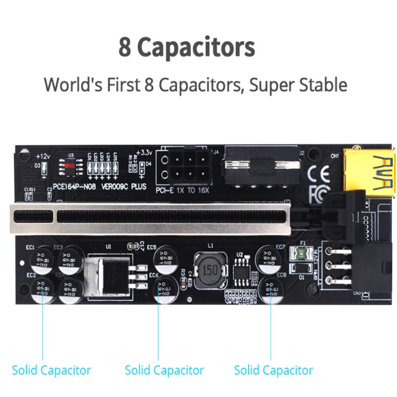 Удлинительный кабель для видеокарты PCIE Riser VER010S PLUS, адаптер PCI Express Riser VER009C PCIE X16, для майнинга