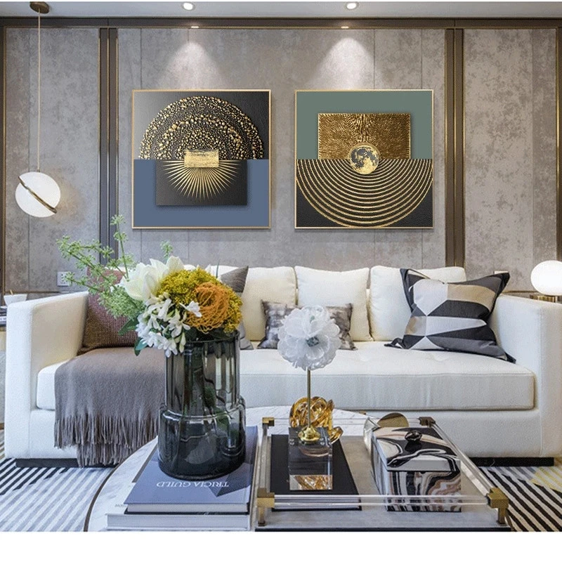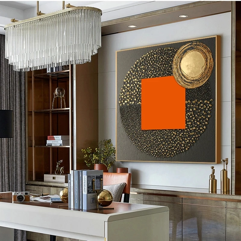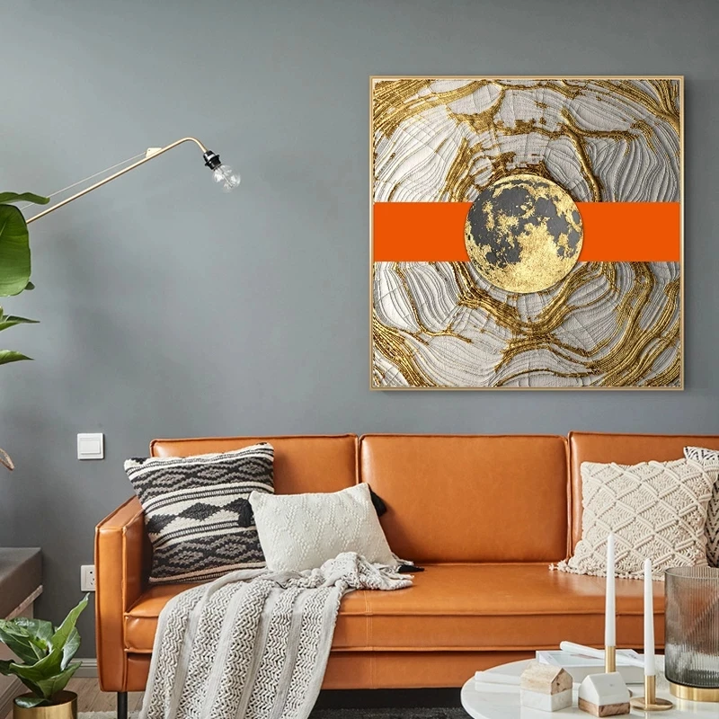 Золотая оранжевая Роскошная Картина на холсте, скандинавские постеры и принты, абстрактная квадратная текстура, Настенная картина для гостиной, домашнего декора