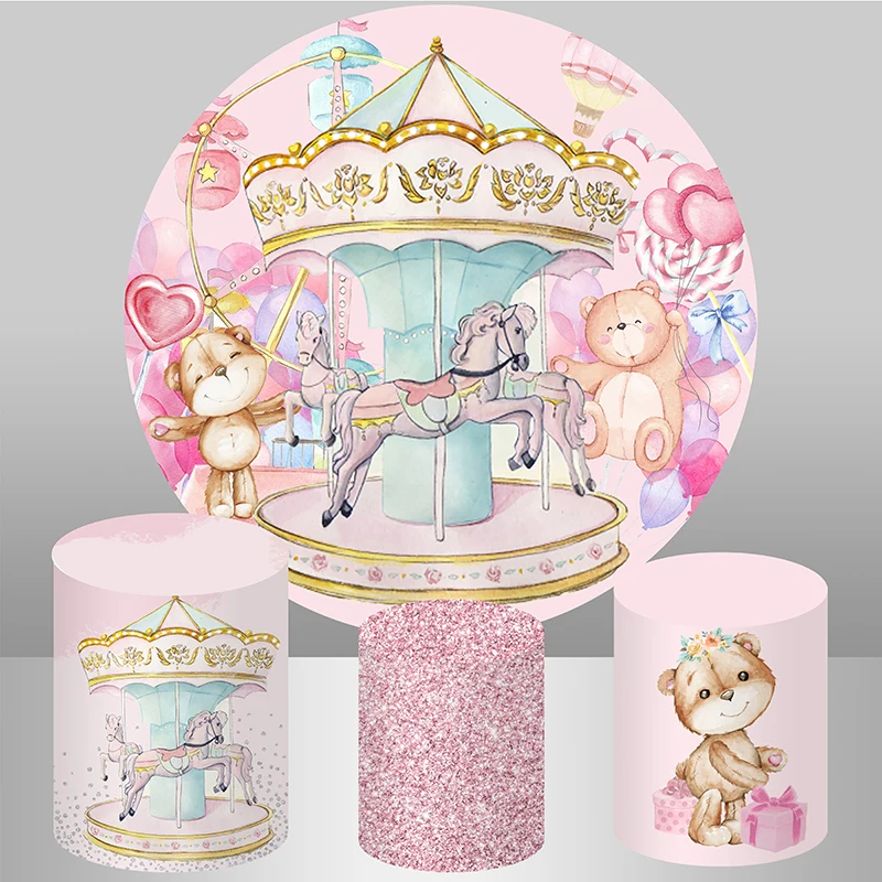 Новорожденный ребенок душ Девочка День Рождения Круглый фон крышка медведь Блестящий розовый карусель круглый фон стол цилиндр крышка