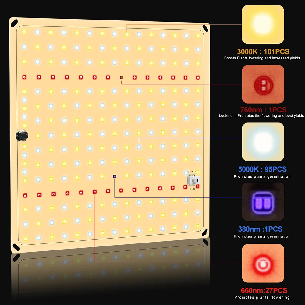 Особенности:* 1. Дизайн переключателя VEG/BLOOM позволяет свободно устанавливать рост и цветение.* 2. 2 Вт алюминиевый блок теплоотвода высокой проводимости обеспечивает более длительный срок службы лампы.* 3. Управляемый водонепроницаемым источником питания серии 65W. Основной переключатель на шнуре питания.* 4. Использование LM281B + светодиодный диоды для подавления переходных скачков напряжения, профессиональные светодиодные лампы для растений светильник ing с МОЩНЫЙ СВЕТИЛЬНИК на выходе.* 5. Светильник весовой конструкции: только 750 г с отдельной конструкцией блока питания и светильник, может быть установлен на свободу в соответствии с различными потребностями.* 6. Рекомендуется использовать площадь: 28X28X3 6 дюймов рост растений, бак для воды Китай с светильник облучения покрытие 2.5X2.5FT.Описание:* 1. Размеры: 30x30x4,5 см* 2. Вес: 0,5 кг* 3. Количество бусин: 225Посылка включает в себя:1 х растительный светильник1 х подвесной аксессуар