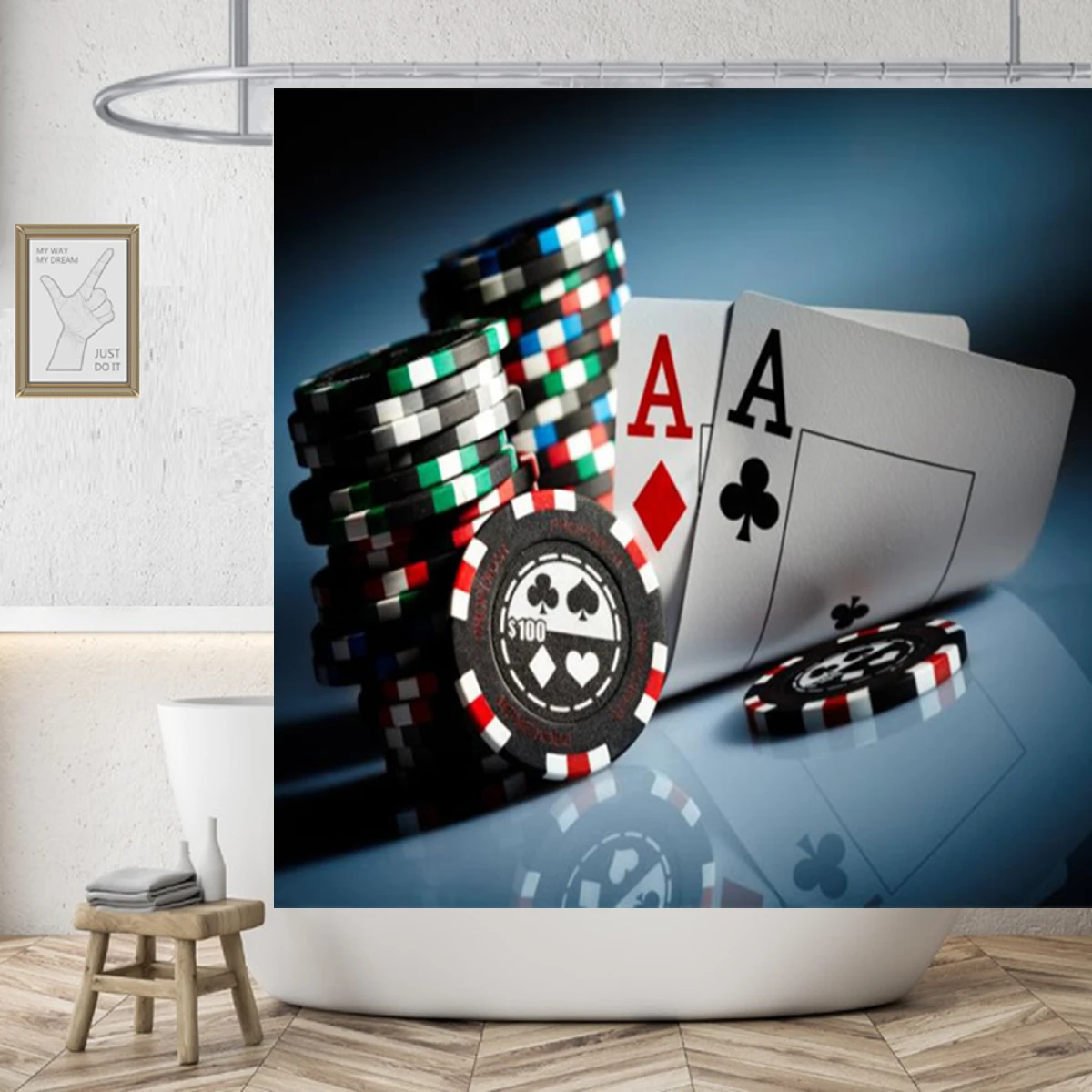 Высококачественная Водонепроницаемая занавеска для душа с принтом денег, игровая карточка, картина маслом, занавески для ванной с кораблем, женский домашний декор, занавески