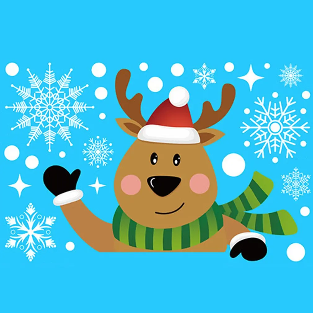 Оригинальный дизайн, новогодние наклейки на окно с несколькими элементами. Подходит для детских праздничных декораций, помогает развивать воображение и рабочие способности детей.