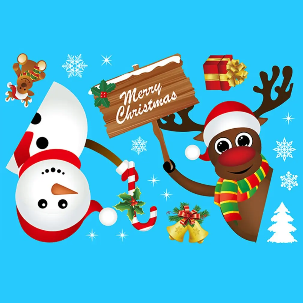 Статические декоративные наклейки из ПВХ на новый год 2021 года для рождественских дверей и окон, двусторонние наклейки из искусственного стекла