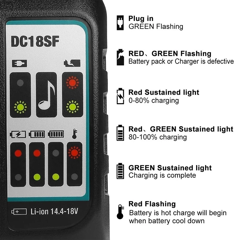 Зарядное устройство для литиевой батареи Makita 14,4 V-18V DC18SF DC18RC DC18RD DC18RA