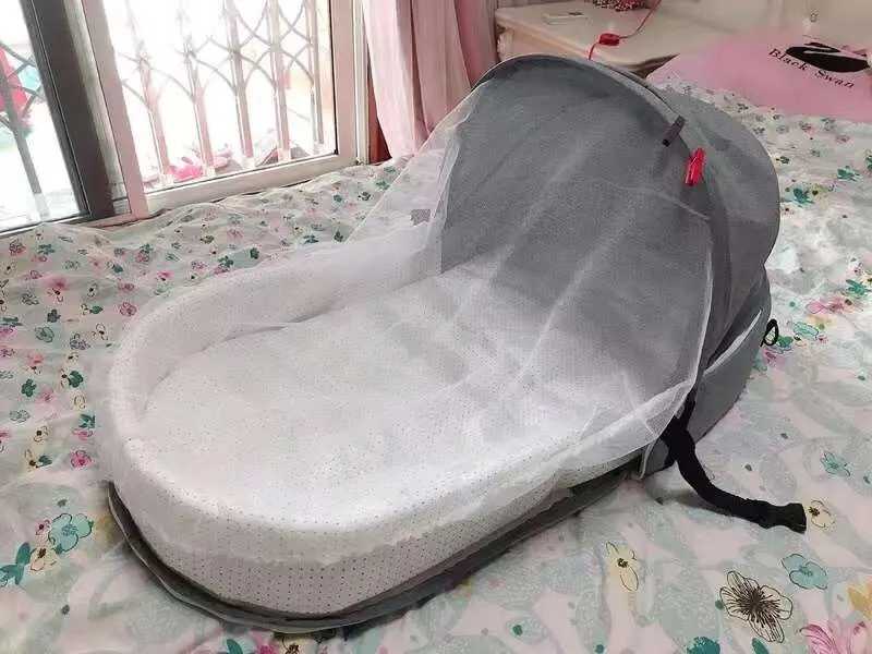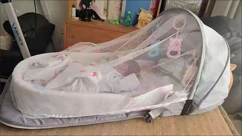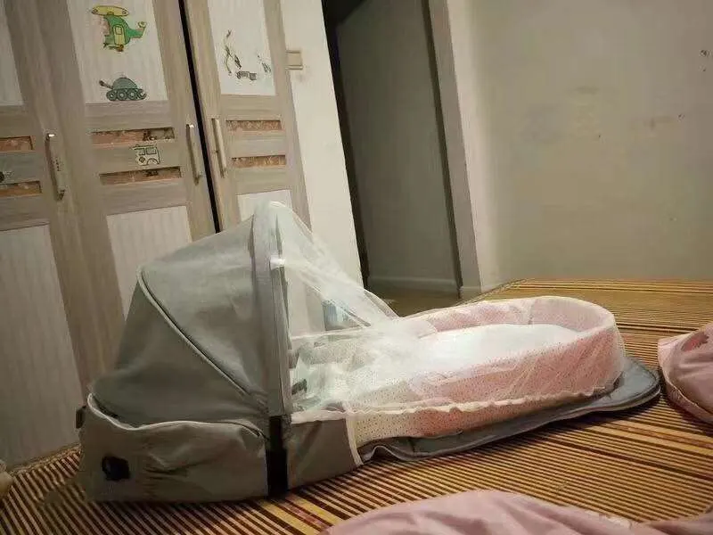 Детская кроватка для детей 0-12 месяцев, портативная складная дышащая корзина для сна с москитной сеткой, для детей