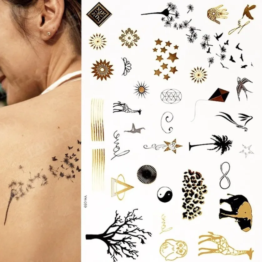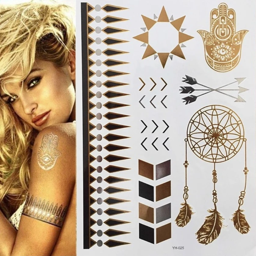 Временные татуировки, золотые, серебряные, бохо, водонепроницаемые,...