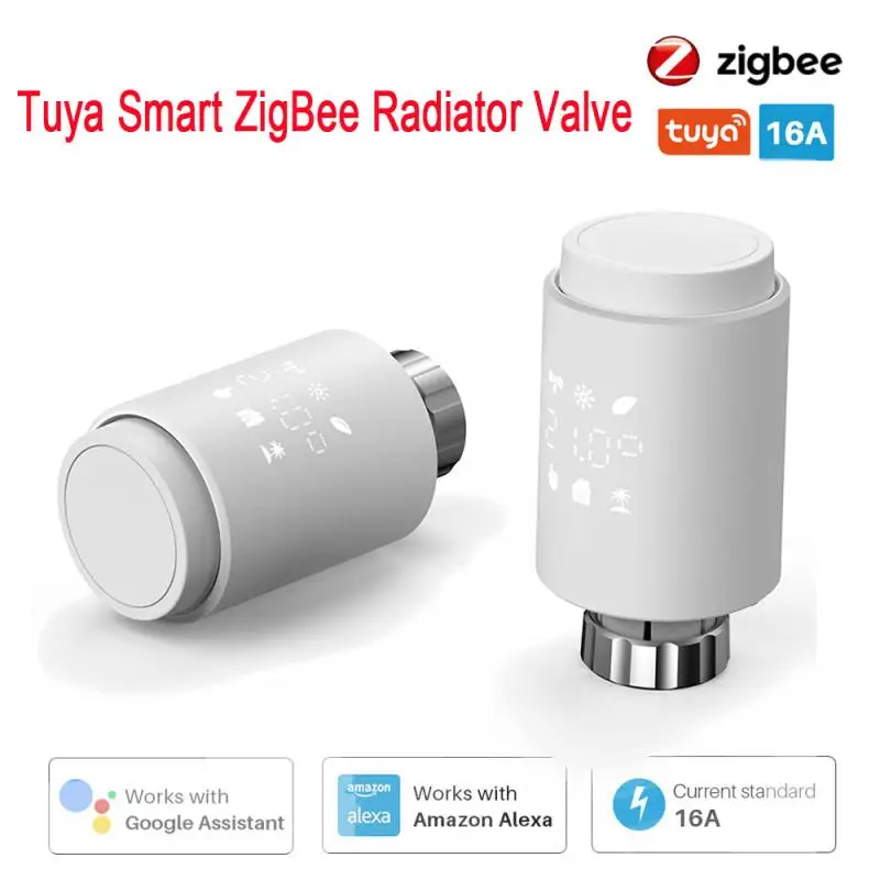 1. Термостат привода радиатора Smart Tuya ZigBee: Новый мини-дизайн с простым и четким ЖК-экраном на корпусе, термостат радиатора с ЖК-дисплеем и двумя секциями аккумуляторов AA, который является специальным клапаном, использующим вместе с нагревательным радиатором. Искусственно устанавливаемая температура в помещении, В основном используется в напольной системе отопления для контроля закрытия и открытия трубы.