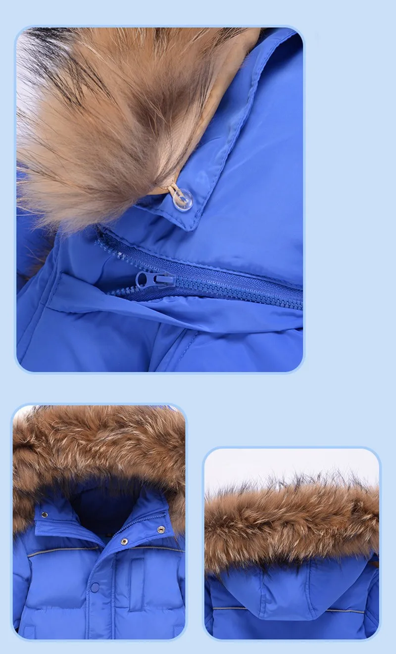 Детская верхняя одежда, зимний пуховой комбинезон с воротником из натурального меха, детские парки, Комбинезоны и пуховики, зимний комбинезон, детское легкое пальто для девочек