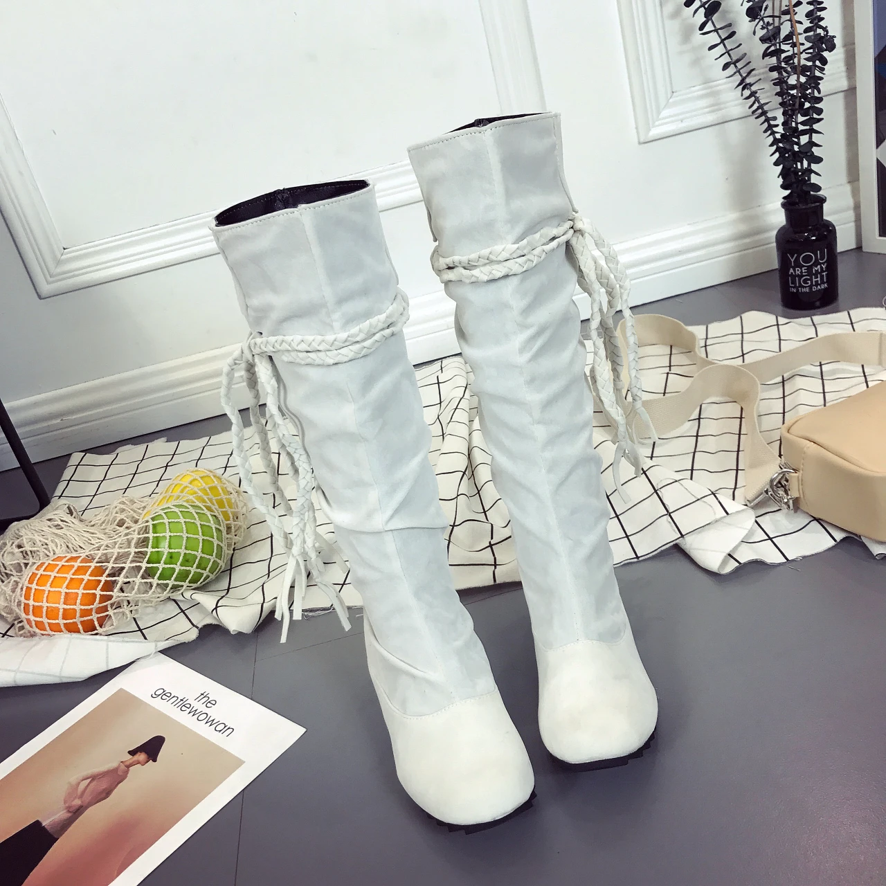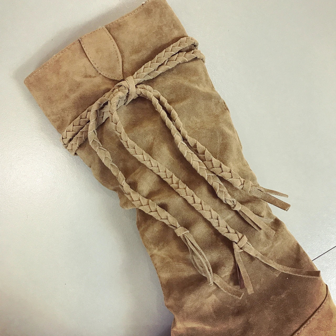 Женские сапоги на плоской подошве, с бахромой, до колена, Размеры 3...