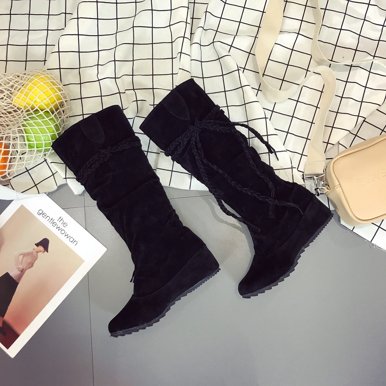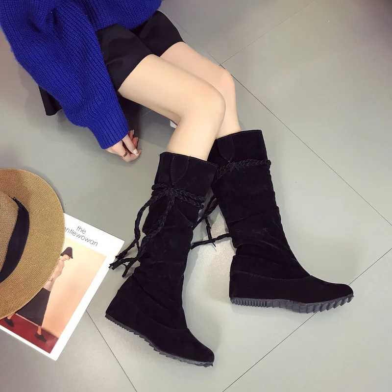 Сапоги женские зимние, до колена, на низком каблуке, в римском стиле