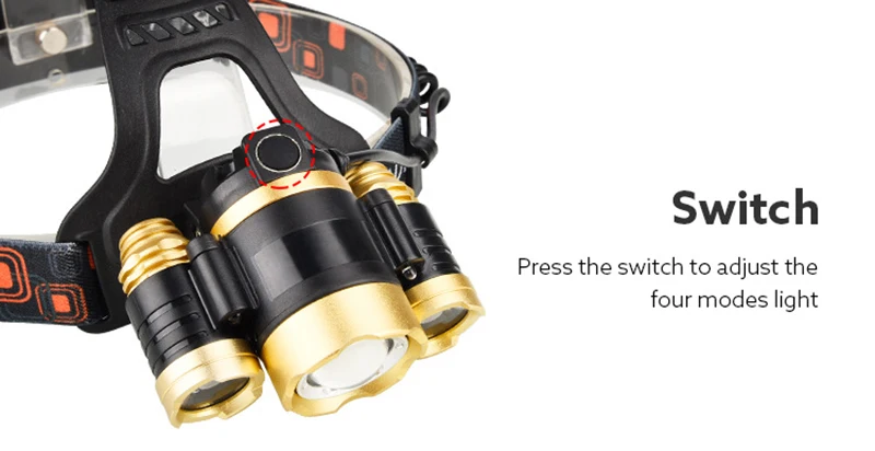 Суперъяркий светодиодный налобный фонарь для рыбалки 3 XM-L T6, нал...