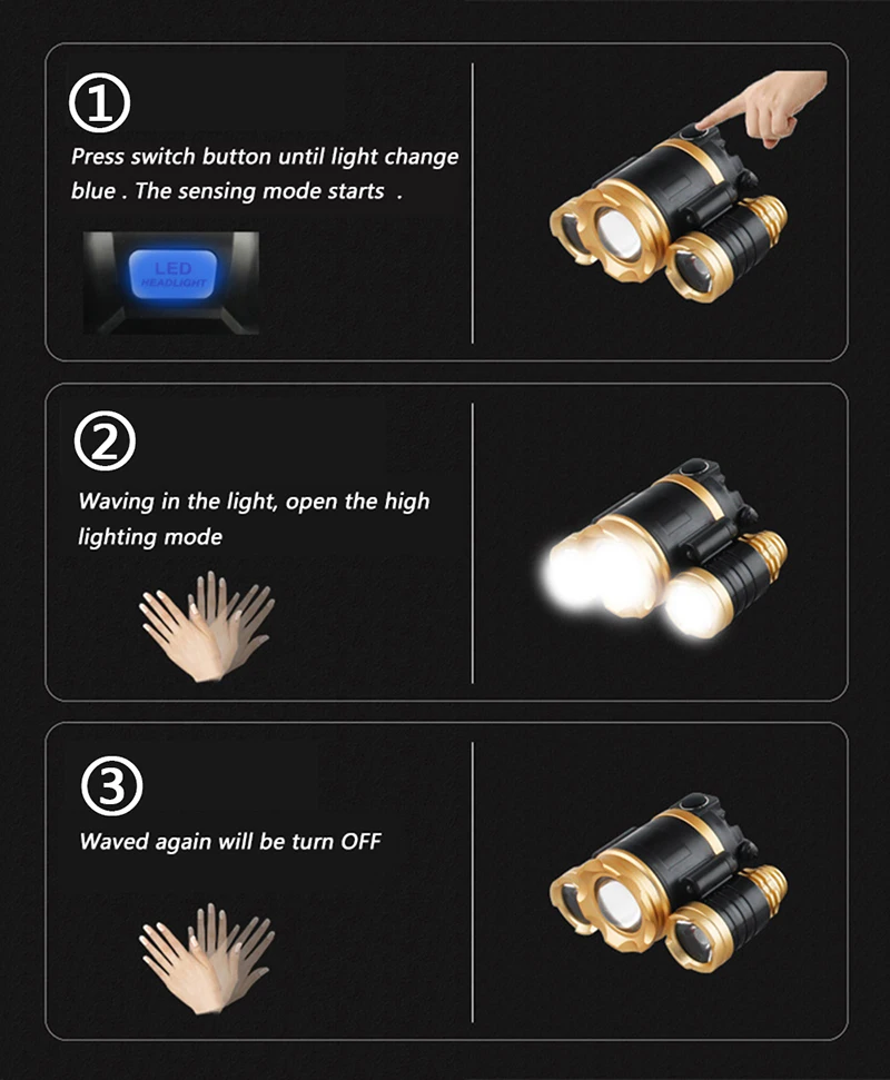 Масштабирусветильник Головной фонарь T6, фонарь, перезаряжасветильник онарь, ЛОБНЫЙ фонарь, Головной фонарь для рыбалки, внешний аккумулятор 18650, сенсорный светодиодный налобный фонарь