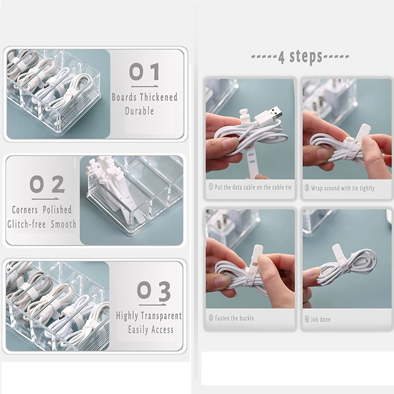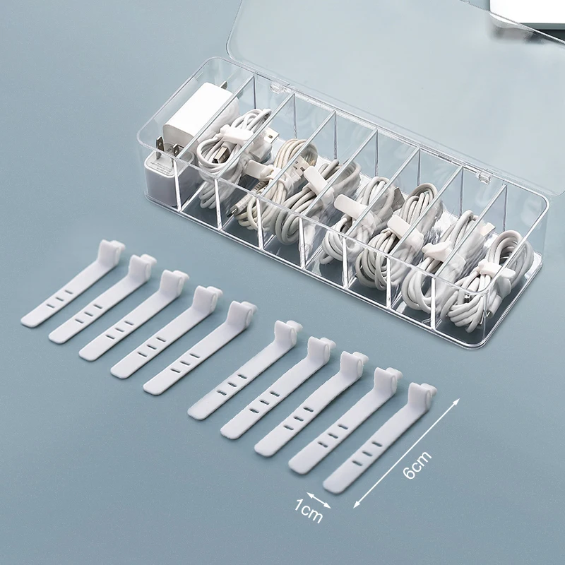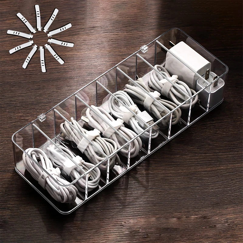 Прозрачная пластиковая корзина для хранения со стяжками, Настольный органайзер для канцелярских принадлежностей, органайзер для макияжа, контейнер для управления проводами и зарядным устройством, коробка для хранения кабеля