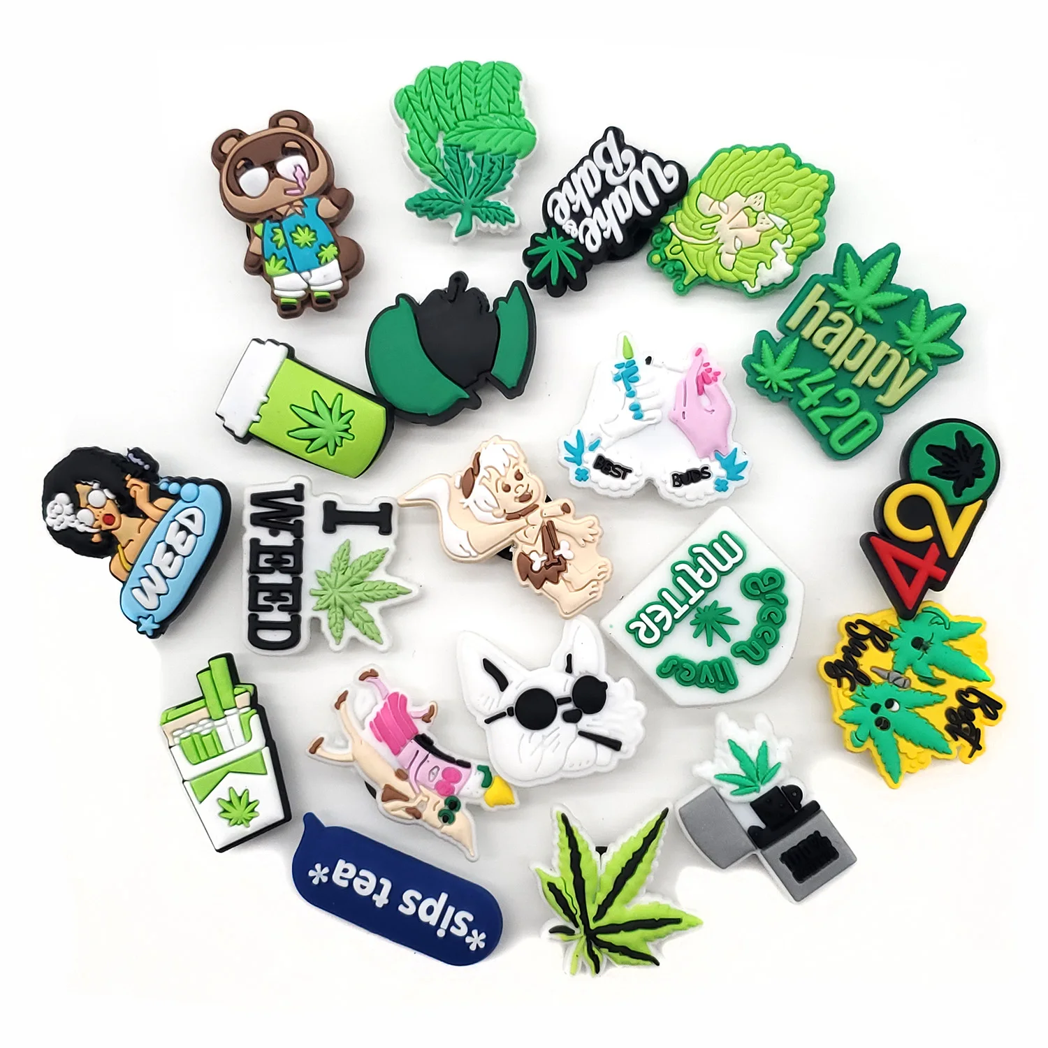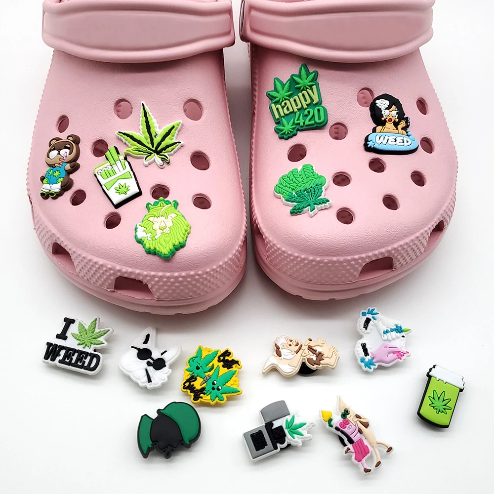 Забавные Подвески JIBZ с зелеными листьями для садовой обуви, сандалий, браслетов, Симпатичные Мультяшные аксессуары для обуви из ПВХ, украшение для вечевечерние, подарок