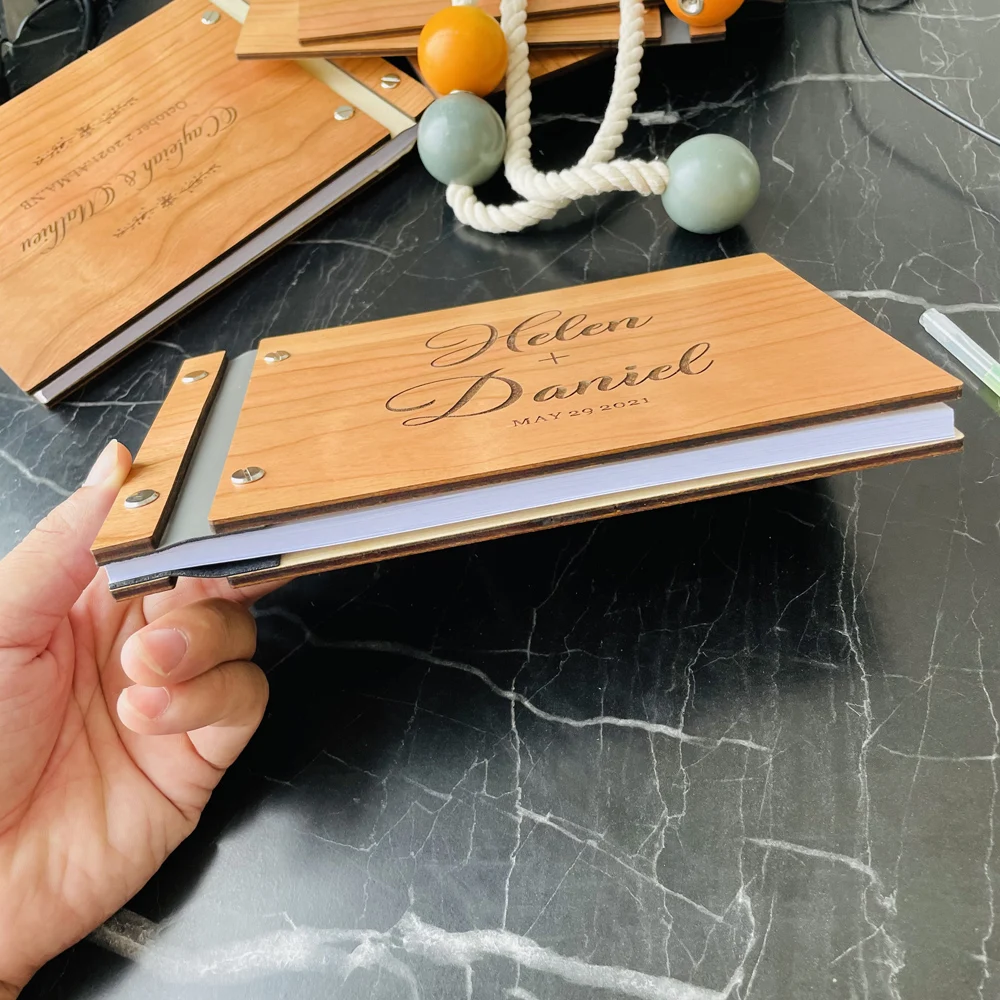 Пользовательские деревянные обложки Гостевая книга свадебный альбом...